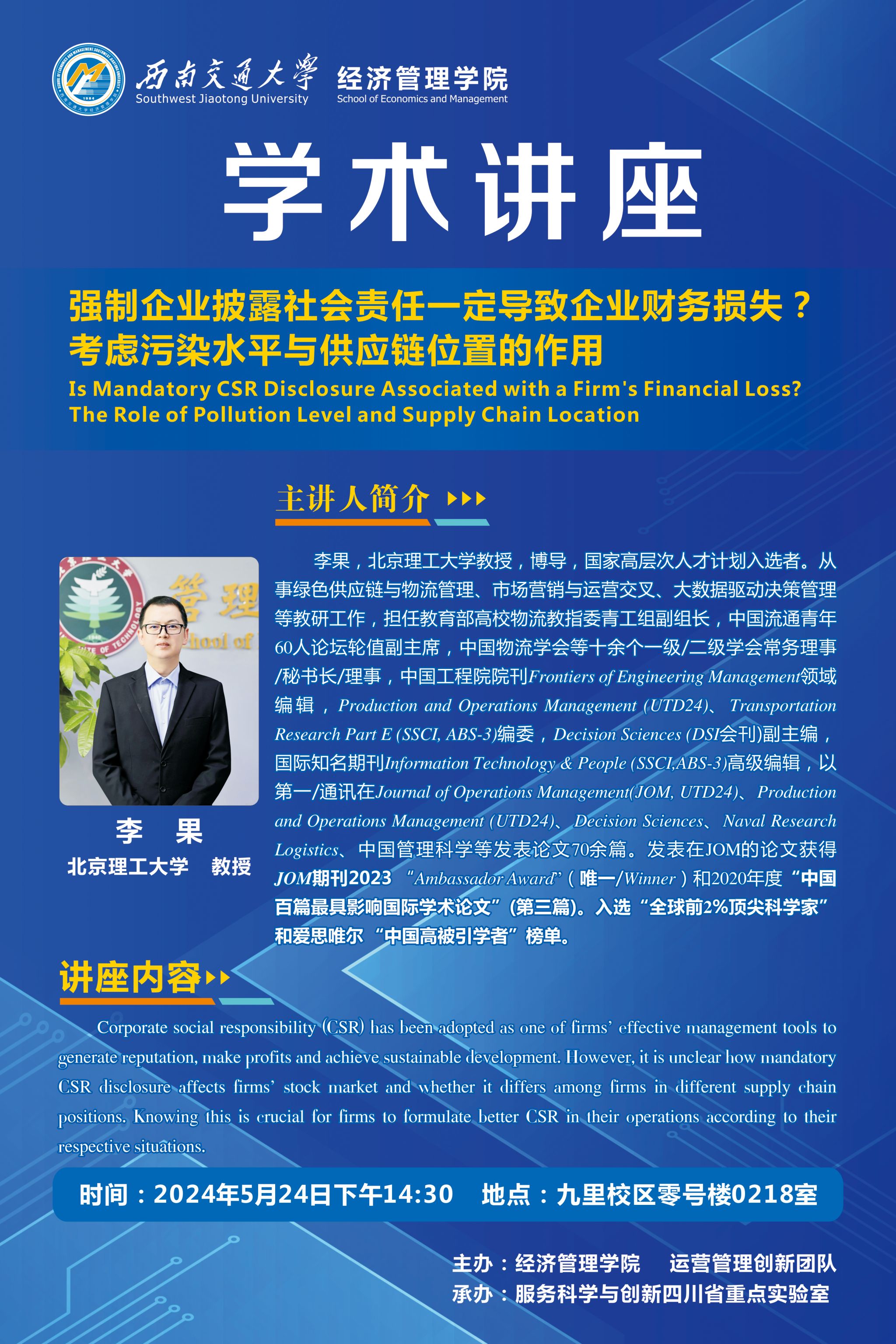 北京理工大学李果教授学术讲座