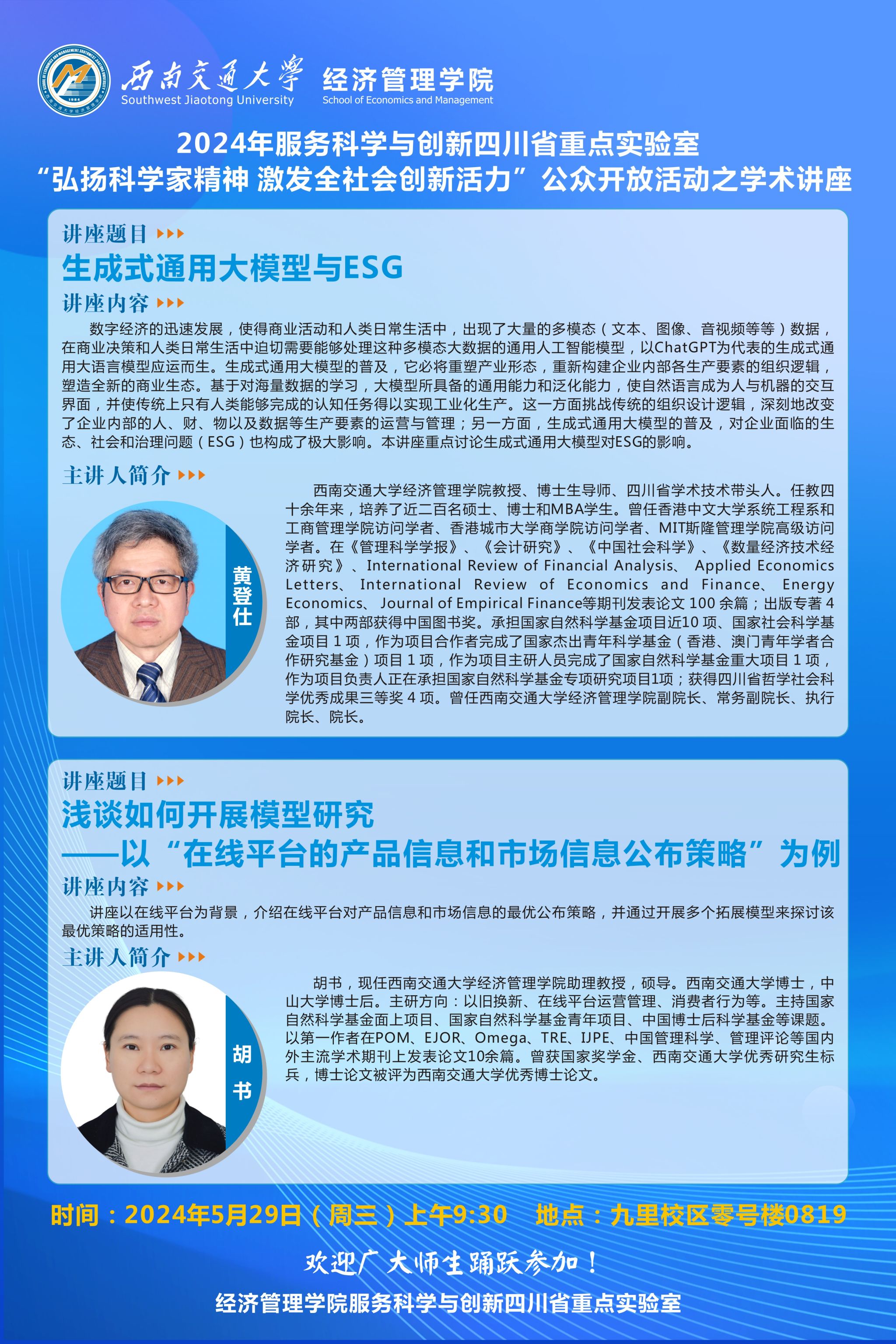 402永利集团官网入口黄登仕教授及胡书助理教授讲座