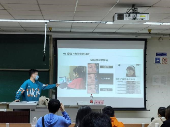 陈海波以本科2019级的大学生为例向团干部介绍疫情下大学生的日常,引入本次活动的主题。