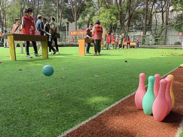 也许我们会想当然的认为老同志们因为年龄原因行动不便,但事实并非如此。门球场的场地上我们可以看到他们在进行着沙包钻洞,打保龄球,套圈和弹球游戏等活动,沙包在阳光下飞舞,保龄球在飞快地翻滚,套圈在肆意地飞翔,无一不诉说着老同志身强体健的晚晴之美。