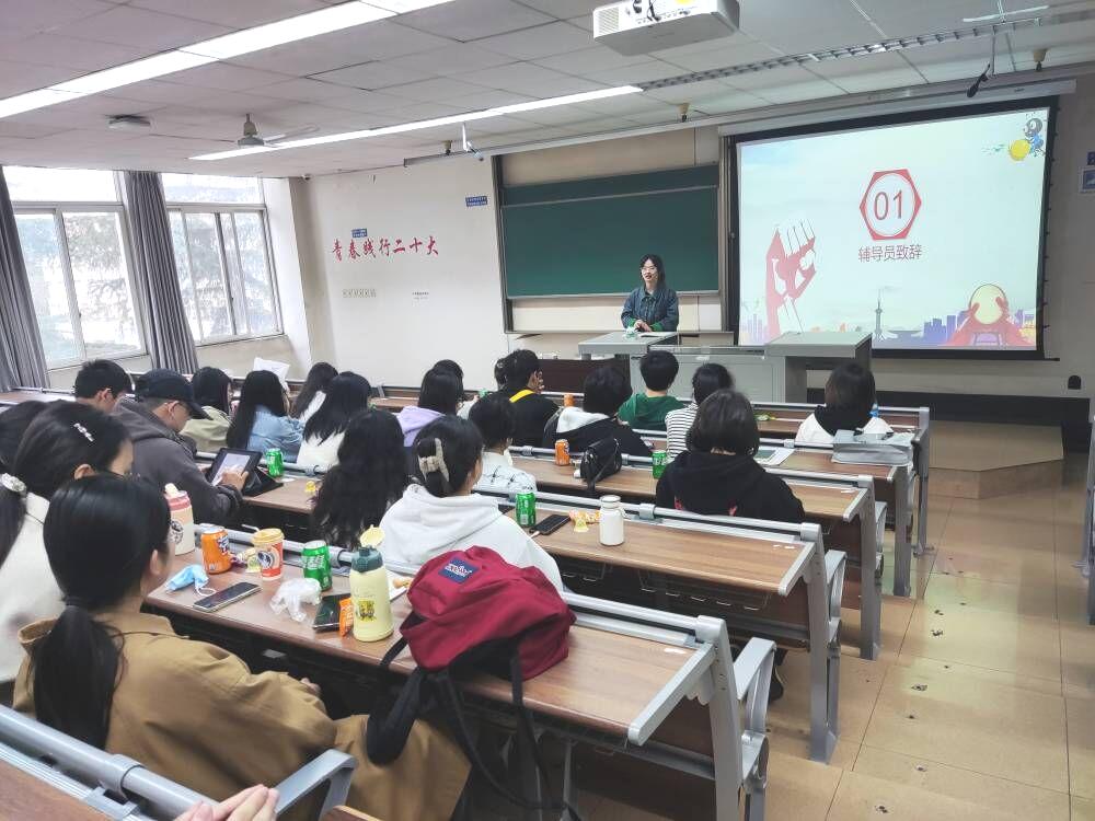 随后,班长彭琳芮带领全体同重温关于党的二十大的理论知识,进一步学习了过去五年的工作和新时代十年的伟大变革,以具体的数字向同学们展示了我国近几年的伟大成就。同时,她提出作为新时代的青年,我们要勇于担当使命,肯吃苦,为祖国发展出自己的一份力。