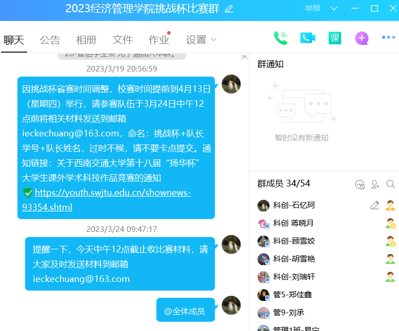 自2023年2月,各学院、各级团组织以多种形式进行广泛的宣传动员。在校团委和学院的通力配合下,经管学院师生充分了解了竞赛内容及总体安排。同时,学院团委通过建立挑战杯比赛QQ群的方式积极组织学院队伍参加比赛。各参赛队在老师指导下完成了申报作品,并完成了作品的提交。永利集团官网于四月初顺利收集各报名参赛队伍的材料。后续将结合实际情况统筹开展遴选,推荐优秀项目参加校赛,希望各报名队伍认真准备比赛,同时预祝选手们在比赛中取得理想的成绩!