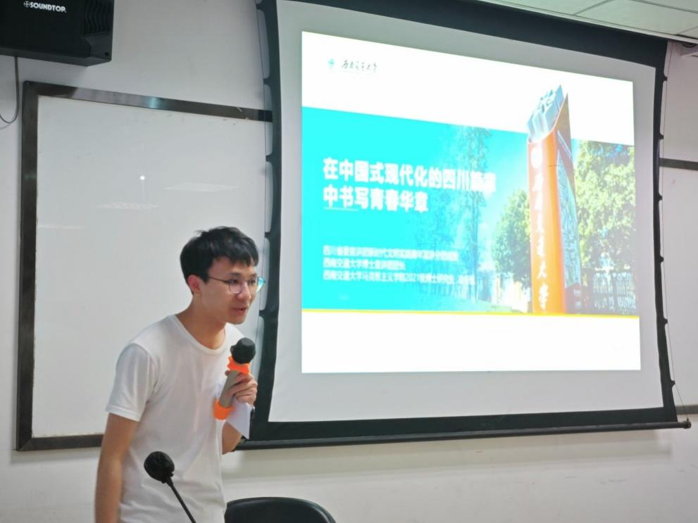 2023年5月4日晚19点,402永利集团官网入口于J0316开展“星火经英”计划第十一期第八次团干部培训暨青年讲师团讲座。本次培训由四川省委宣讲团新时代文明实践青年分团成员、402永利集团官网入口博士宣讲团团长、马克思主义学院2021级博士研究生冷书恒主讲,培训主题为“在中国式现代化的四川篇章中书写青春华章”,详细介绍了四川在中国式现代化建设中做出的贡献与成就,有力引导了同学们思考新时代青年在此进程中应该如何贡献自己的青春力量。