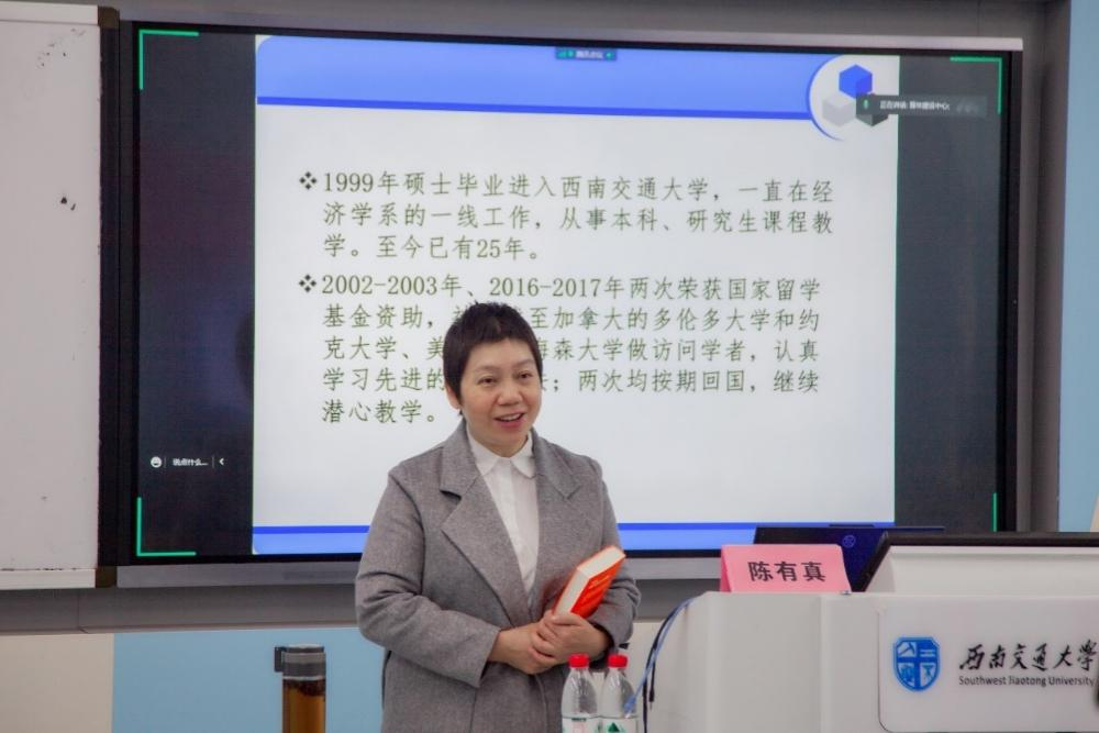 活动伊始,陈有真通过引用腾讯公司创始人马化腾、企业家罗永浩、徐小平、刘润等知名人士对于本书的评价,指出了这本书在各个方面对读者所能带来的巨大帮助以及对读者培养经济学思维的促进作用。接着,陈有真引用薛兆丰老师所说的一句话来勉励同学们:“每个中国人都能体验经济学带来的乐趣,具备经济学的思维”,希望大家在阅读这本书的过程中能感受到经济学的乐趣并感悟经济学智慧。紧接着,陈有真简单地向同学们介绍了全书的各个章节及其主要内容,帮助同学对全书有一个宏观的认知。