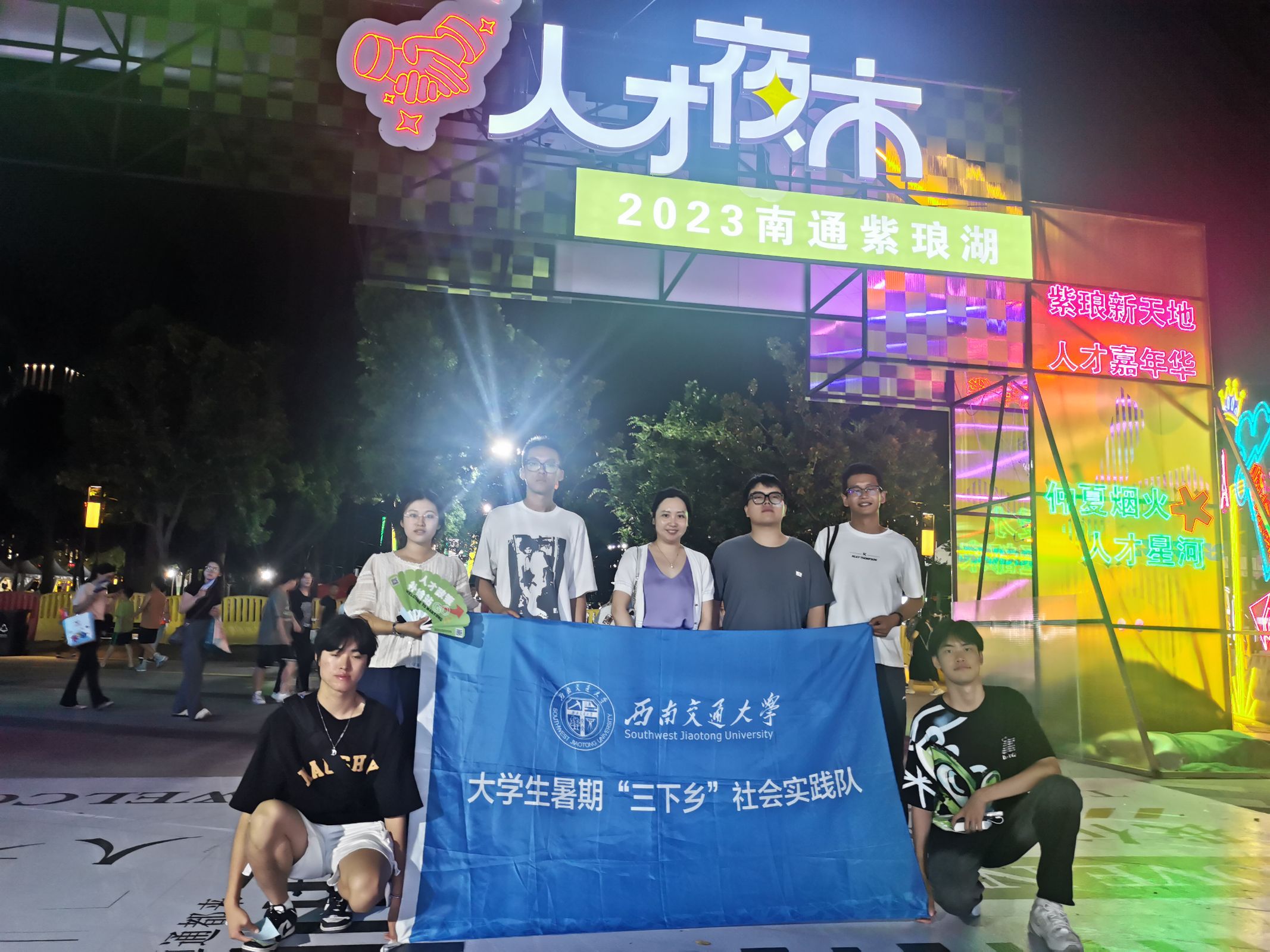 8月8日晚,实践队参观了南通人才夜市。南通借啤酒嘉年华热度办起人才夜市,将人才招聘同地摊、夜市相结合,搭建起求职者和用人单位之间的“连心桥”。夜市集“政策咨询、招聘洽谈、企业推广、社保卡办理”于一体,向各类人才提供多元化、集约式、接地气的服务,实现求职招聘与夜间经济相融共生。招聘人员化身摊主“挑灯纳贤”,不少求职者穿梭其中,在“边逛边选”中寻觅适合的工作。通过参观新颖的人才夜市,实践队增进了对南通人才品牌的认知度,为后续实践奠定了良好的开端。