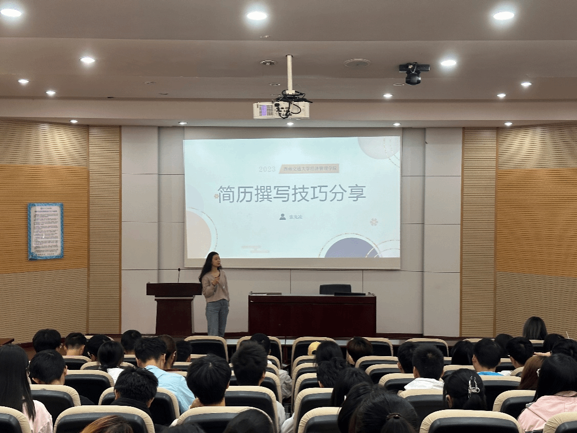 为进一步助力同学们学业和职业生涯规划,指导同学们如何结合自己的规划与实践,制作自己的第一份简历和更好地进行面试,402永利集团官网入口本科2023级分别于10月27日下午和11月2日晚上在九里校区J0215和J4310教室开展了简历撰写技巧分享和企业面试与技能培训讲座。本次讲座由学校中级生涯导师张先凌老师,本科2023级辅导员王哿老师、苏扬老师主讲,本科2023级全体同学参加。