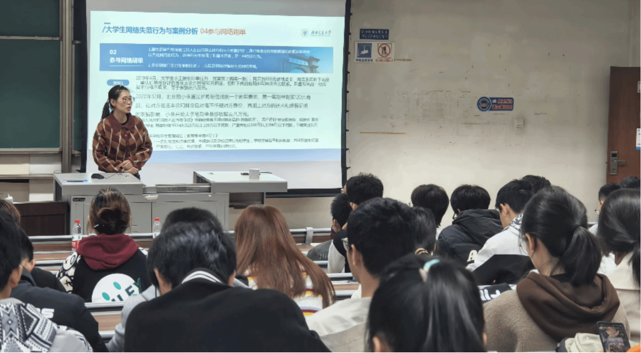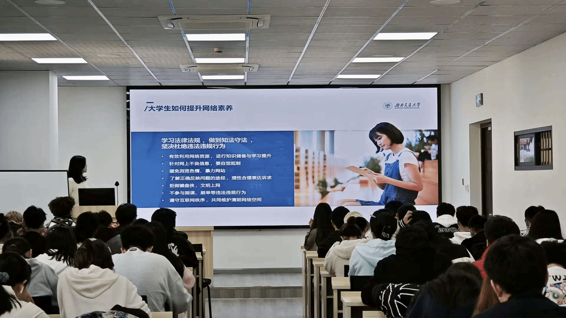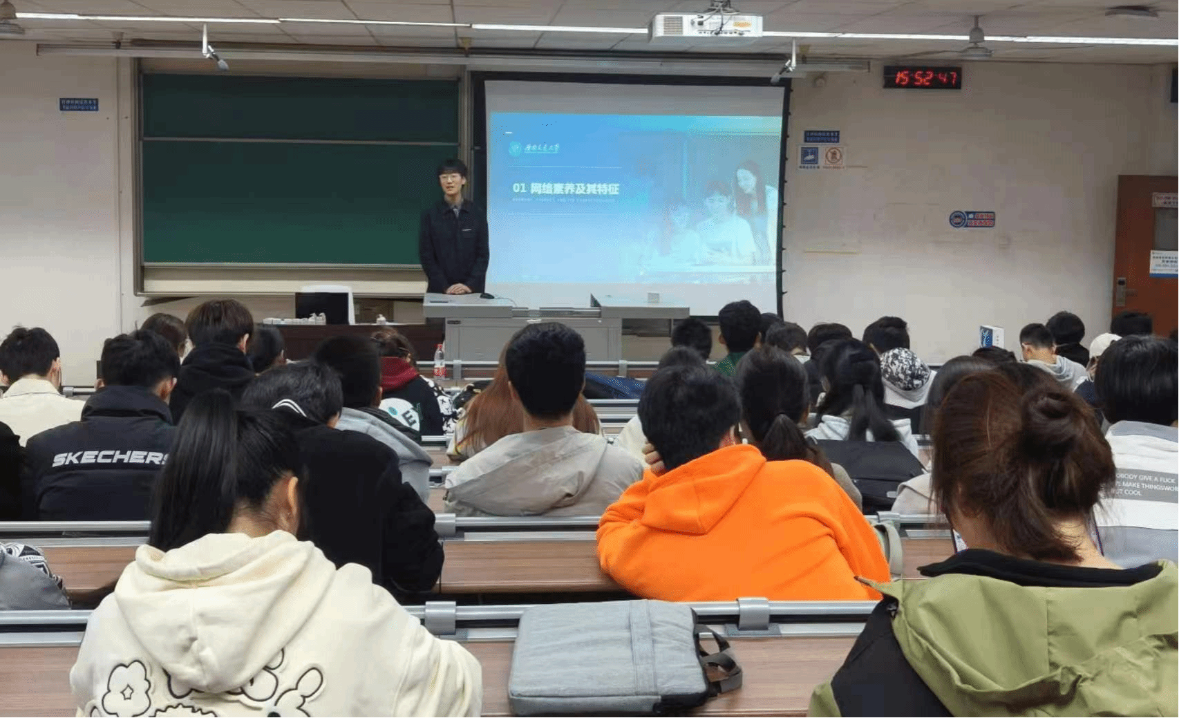 为提高新生们的网络安全意识和信息判断能力,引导大学生提高网络素养、理性安全上网,402永利集团官网入口本科2023级各班以单独或联合开展的形式举行了网络素养教育主题班会。本次网络素养教育主题班会由各班班长主讲,402永利集团官网入口本科2023级辅导员贾佳老师、苏扬老师,以及2023级各班同学参与主题班会。