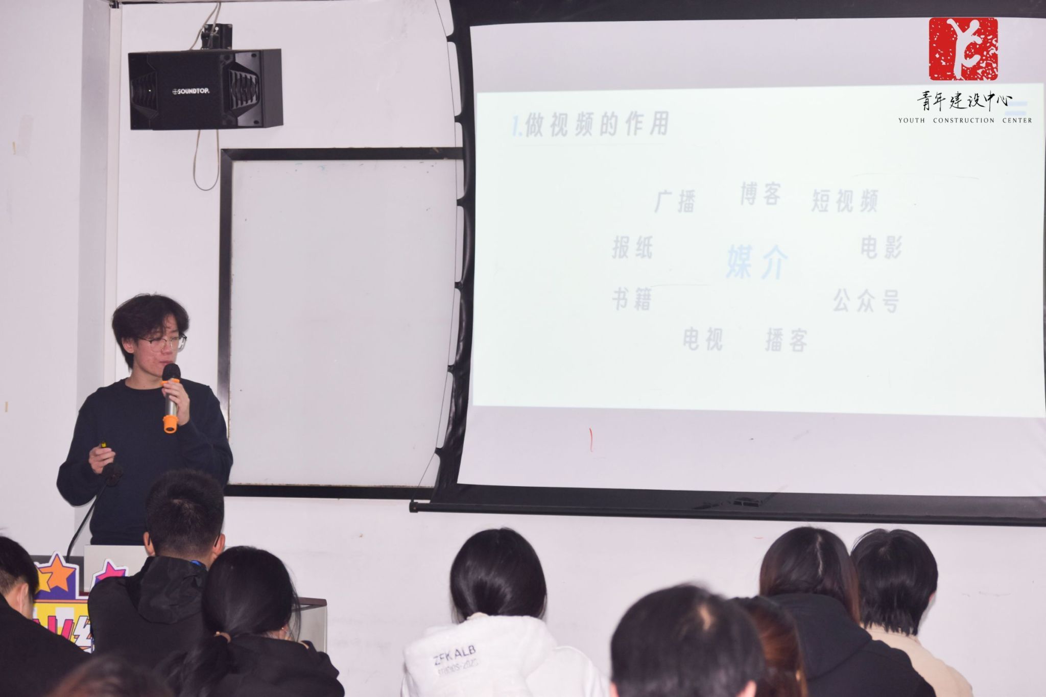 培训伊始,陈粤洋从视频的作用讲起,通过介绍视频的各类媒介,引出视频的两大作用:传达信息和传递情绪。他指出好的视频不仅要说明时间、地点、人物、事件,还要能带来快乐感动。基于此,陈粤洋分享了两个优秀视频。通过这两个视频,团干部们直观感受到何为好的视频,以及好的视频带给人的正面影响。借着这个契机,陈粤洋也鼓励大家平时多发掘好的视频并加以学习。