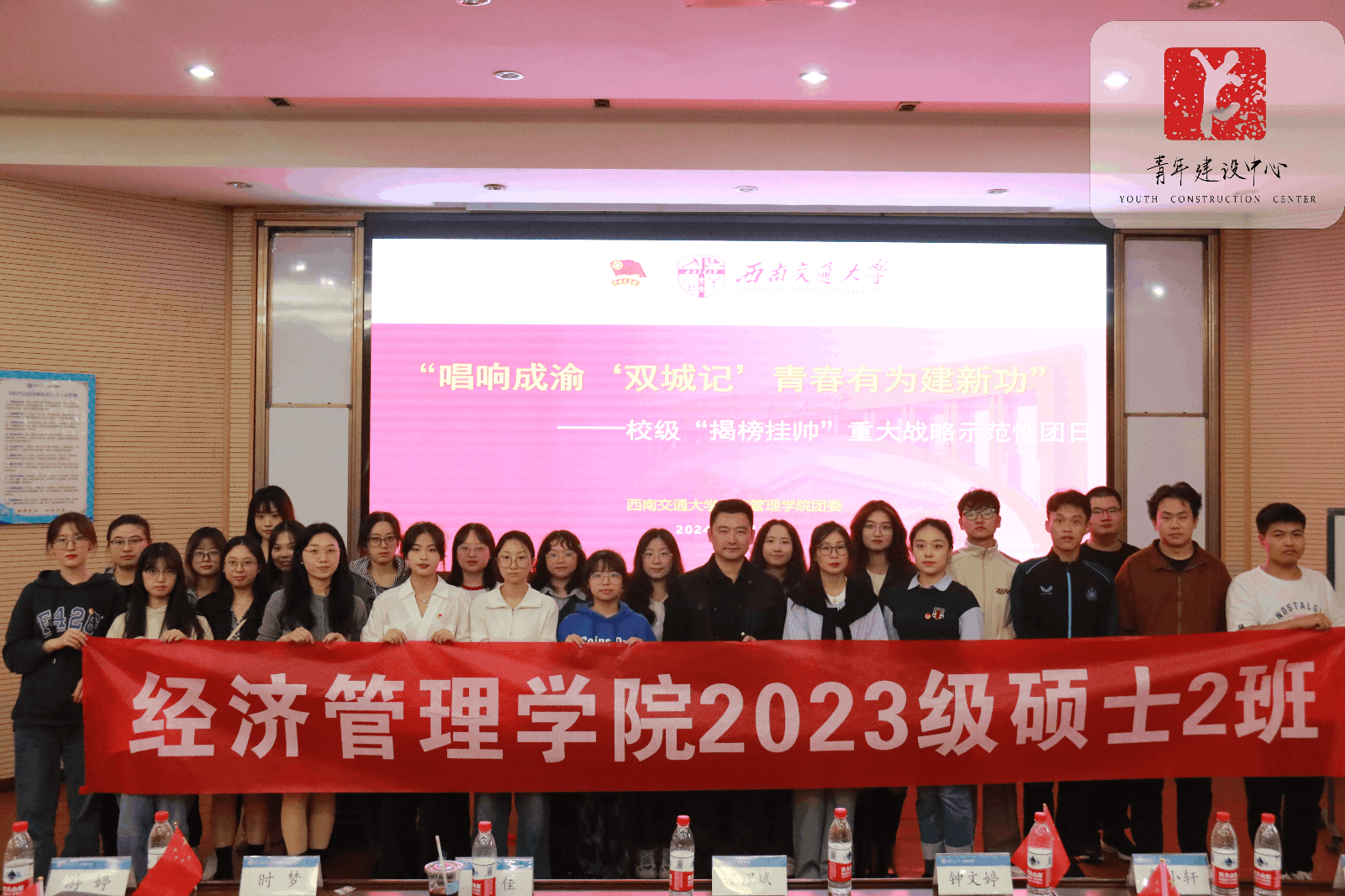最后,晏理斌老师对活动进行总结,分为四个要点:一、要落实党的纲要,以成渝联动推进高质量发展,形成西部增长极,打造内陆开放战略要地。二、关注新能源、新材料、新制造、电子信息等前沿领域,优化课程体系,为新质生产力的发展贡献交大经管新力量。三、希望团员青年了解专业岗位、就业机会、社会需求,明确职业目标,掌握求职技巧,提高就业质量。四、新时代青年应以身入局,以青春砥砺致敬时代使命,为实现中华民族伟大复兴的中国梦接续奋斗。