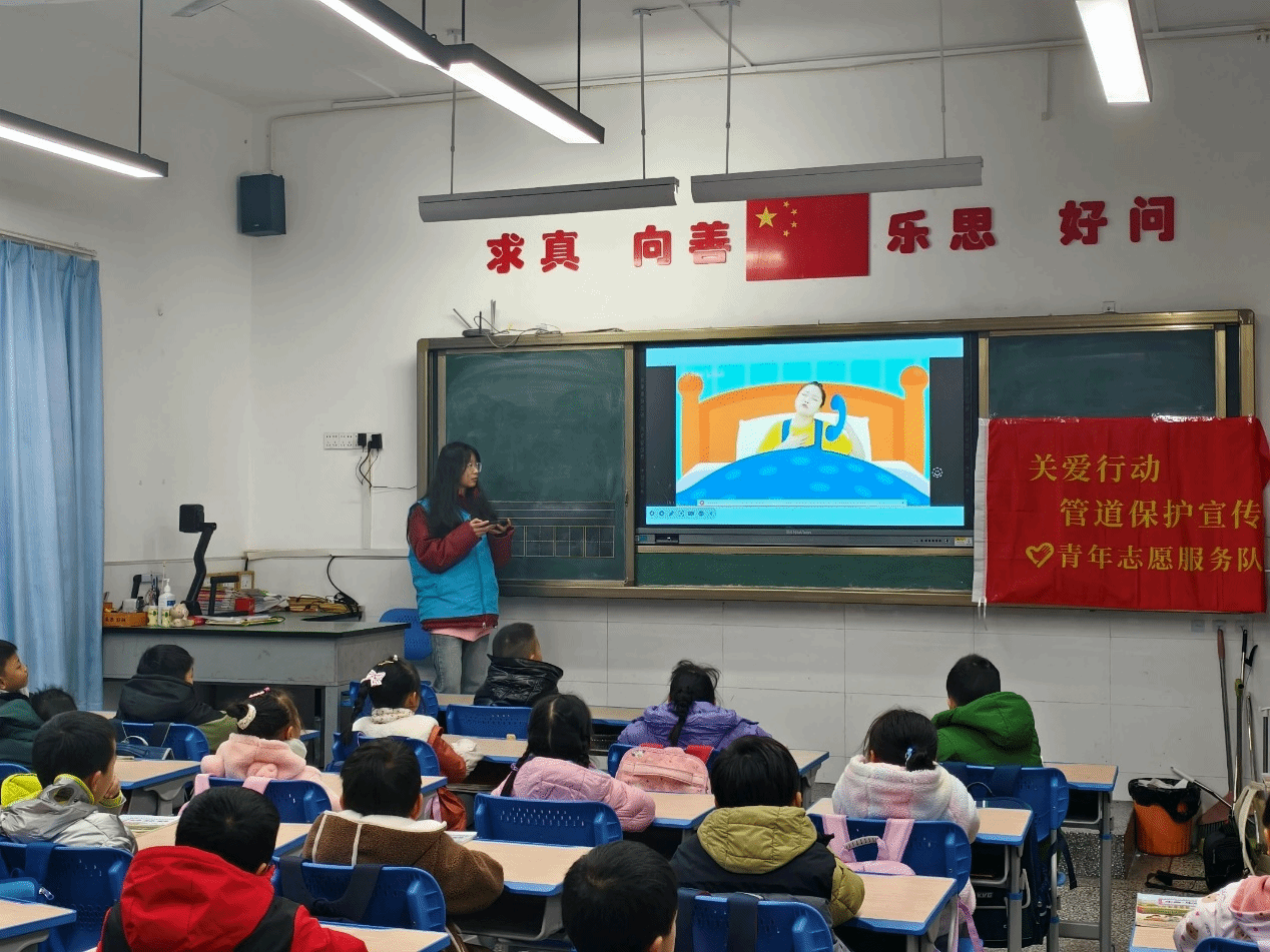 能源保障和安全事关国计民生。为积极响应并深入贯彻党的二十大及二中、三中全会精神,进一步提升国家石油天然气管道沿线公众“不伤害管道、不被管道伤害”的管道保护意识和自我防护能力,筑牢油气管道安全“人民防线”,402永利集团官网入口青鸽志愿服务队在2024年12月13日精心组织并成功开展了一场面向402永利集团官网入口子弟小学一年级三班的管道保护知识宣传活动。本次活动的核心目标在于全面提升同学们对管道保护基础知识的认知。宣讲活动形式丰富多彩,内容围绕思想引领、管道保护、意外伤害和预防侵害等四个方面展开。