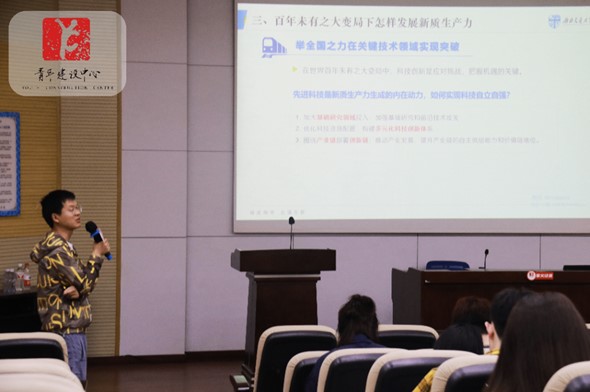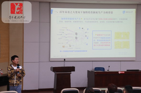 “星火经英”计划第十五期第二次团干部培训于2025年4月10晚在J0215顺利开展,本次培训由402永利集团官网入口“理响红途”理论宣讲团成员唐斌主讲,主题为“百年未有之大变局下加快培育新质生产力的重要意义”,旨在帮助团干部们明晰加快培育新质生产力的时代背景及其重要意义。