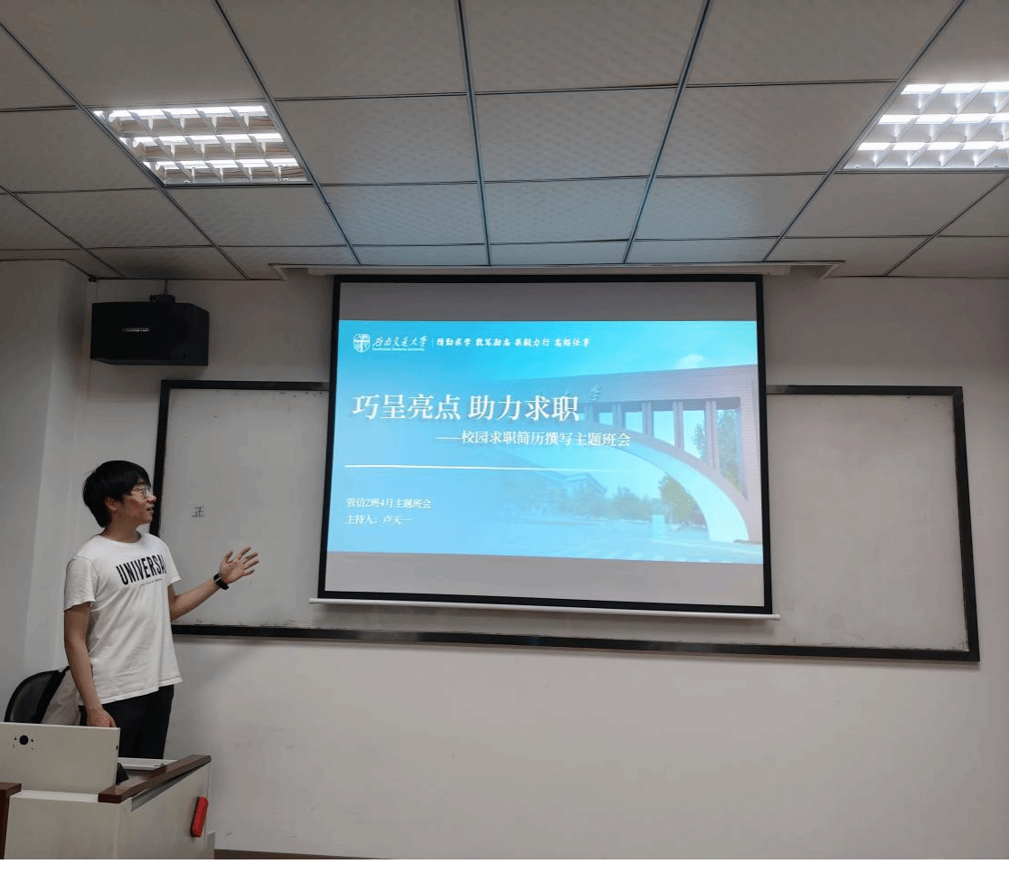 最后,在总结与展望环节中,辅导员苏扬老师和班导师杨斐老师分别对本次班会进行了总结,鼓励同学们明确自我定位,合理规划未来,以精彩的大学生活充实自己的简历,最终驶向理想的彼岸。