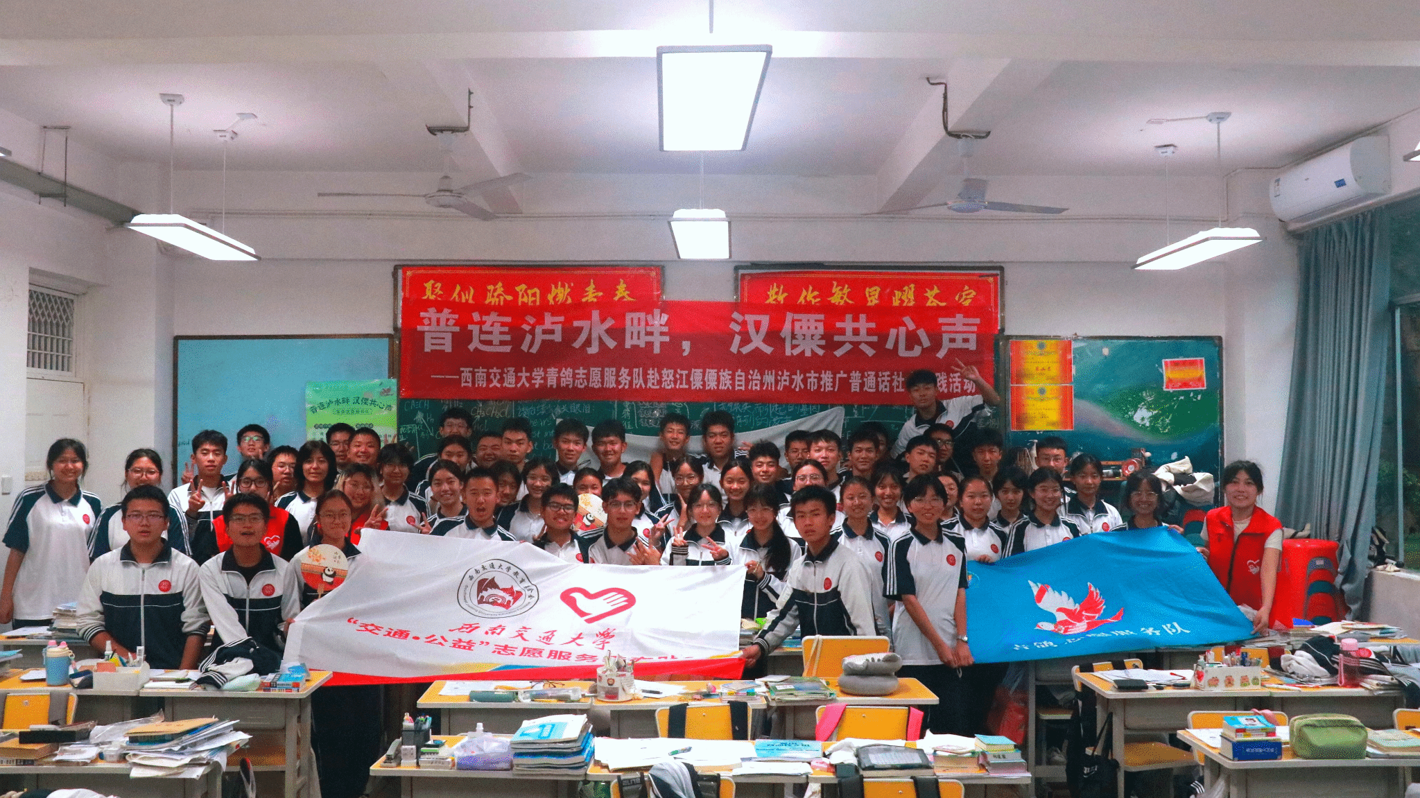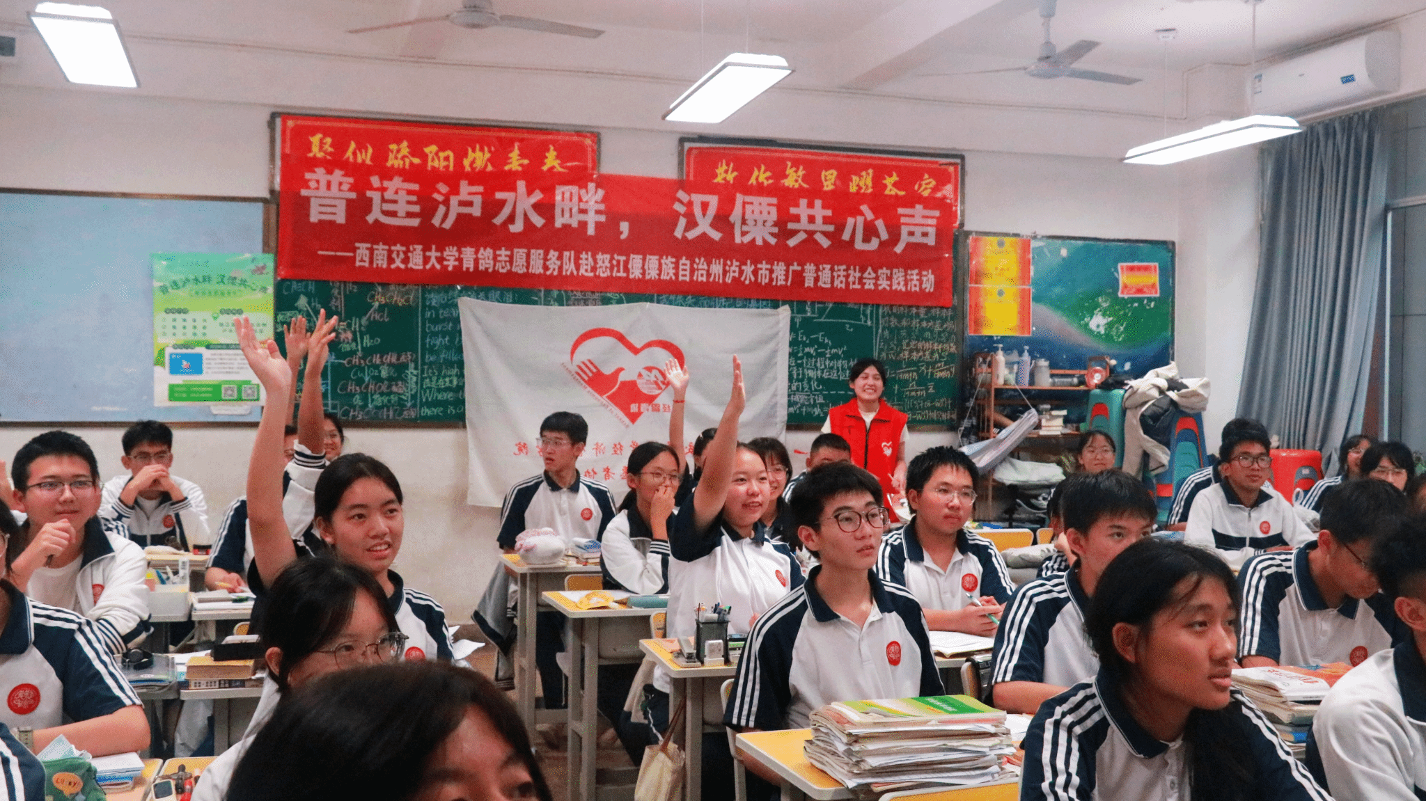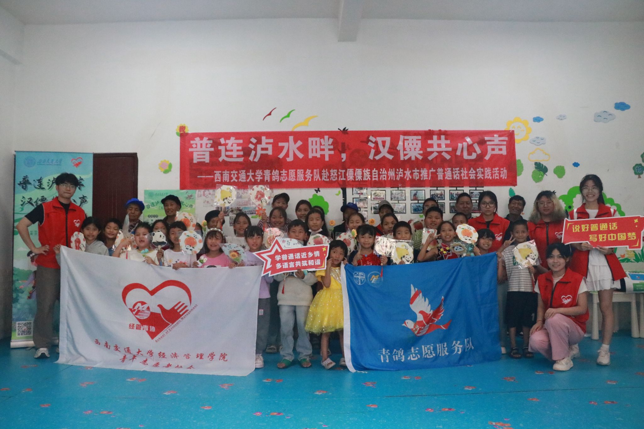 为深入贯彻落实习近平总书记关于教育的重要论述和关于语言文字的重要指示批示精神,进一步推动西部地区少数民族语言文字教育发展,服务铸牢中华民族共同体意识,助力乡村振兴战略实施,5月29日至5月31日,402永利集团官网入口青鸽志愿服务队一行深入云南省怒江傈僳自治州泸水市开展“普连泸水畔,汉僳共心声”——推普助力乡村振兴社会实践活动。此次实践中,团队通过街头调研,定点摊位,课堂教育,走访宣传等形式,开展普通话调研和推广活动,普及民族共同语言,促进中华优秀传统文化传承和发扬,为赓续中华文明倾注青年力量,以青春之行助力乡村振兴。