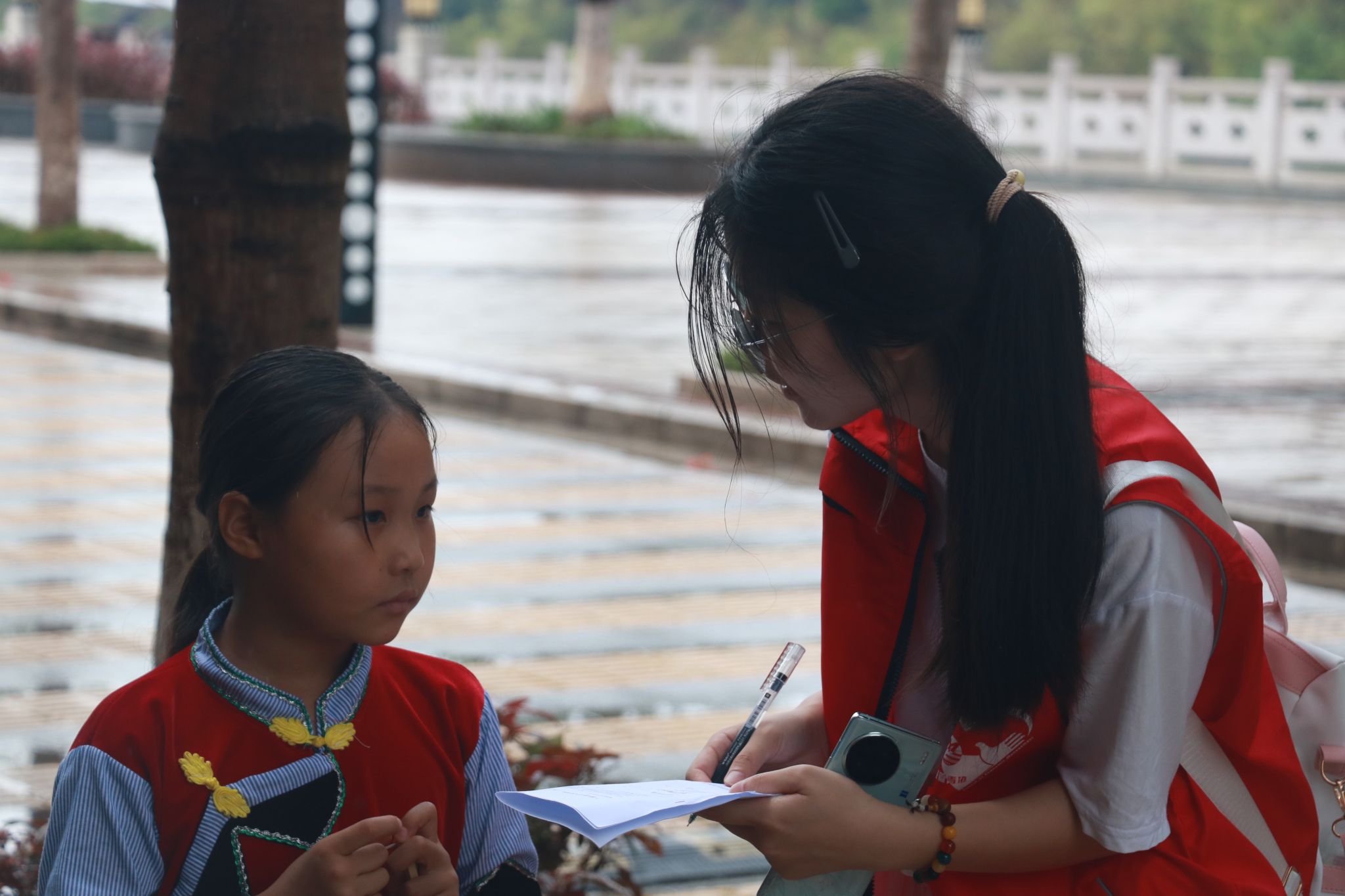 泸水市坐落于云南省西部、怒江傈僳族自治州南部,作为州府,有着“峡谷天籁,摆时之乡”的美誉。这里历史文化悠久,是多民族聚居地,以傈僳族为主,涵盖白族、怒族等21个少数民族,少数民族人口占比较高,语言文字教育成为当地迫切的现实需求。团队抵达泸水市后,迅速与和谐社区及当地学校负责人对接,敲定活动细节。当日下午,成员们走进和谐社区,在热闹街区支起推普摊位,以沉浸式体验拉开活动序幕。