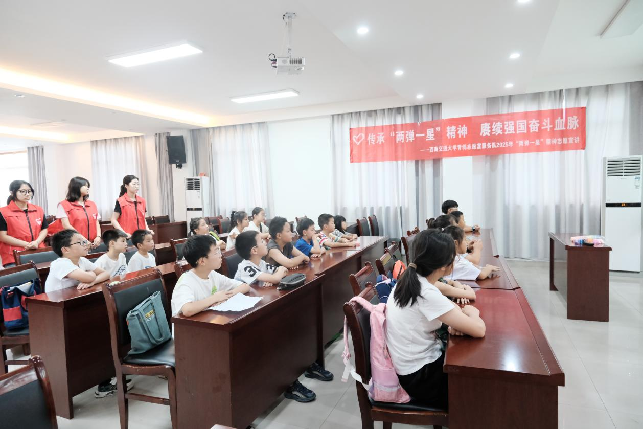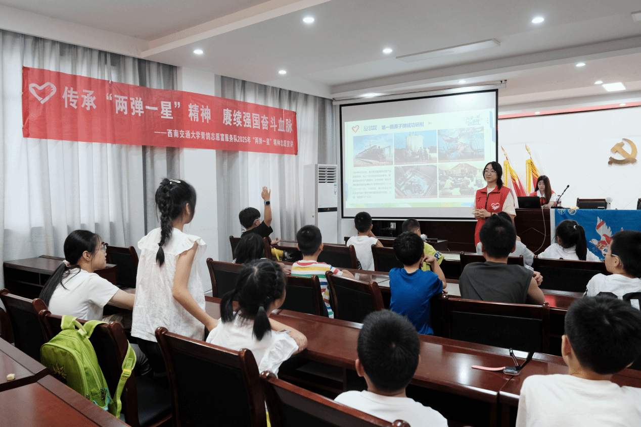为弘扬“两弹一星”精神,传承老一辈科学家爱国奉献的崇高品格,7月9日上午,402永利集团官网入口“两弹一星”精神宣讲青鸽志愿服务队成员在郫都区安靖镇喜安社区开展2025年“两弹一星”精神志愿宣讲活动。