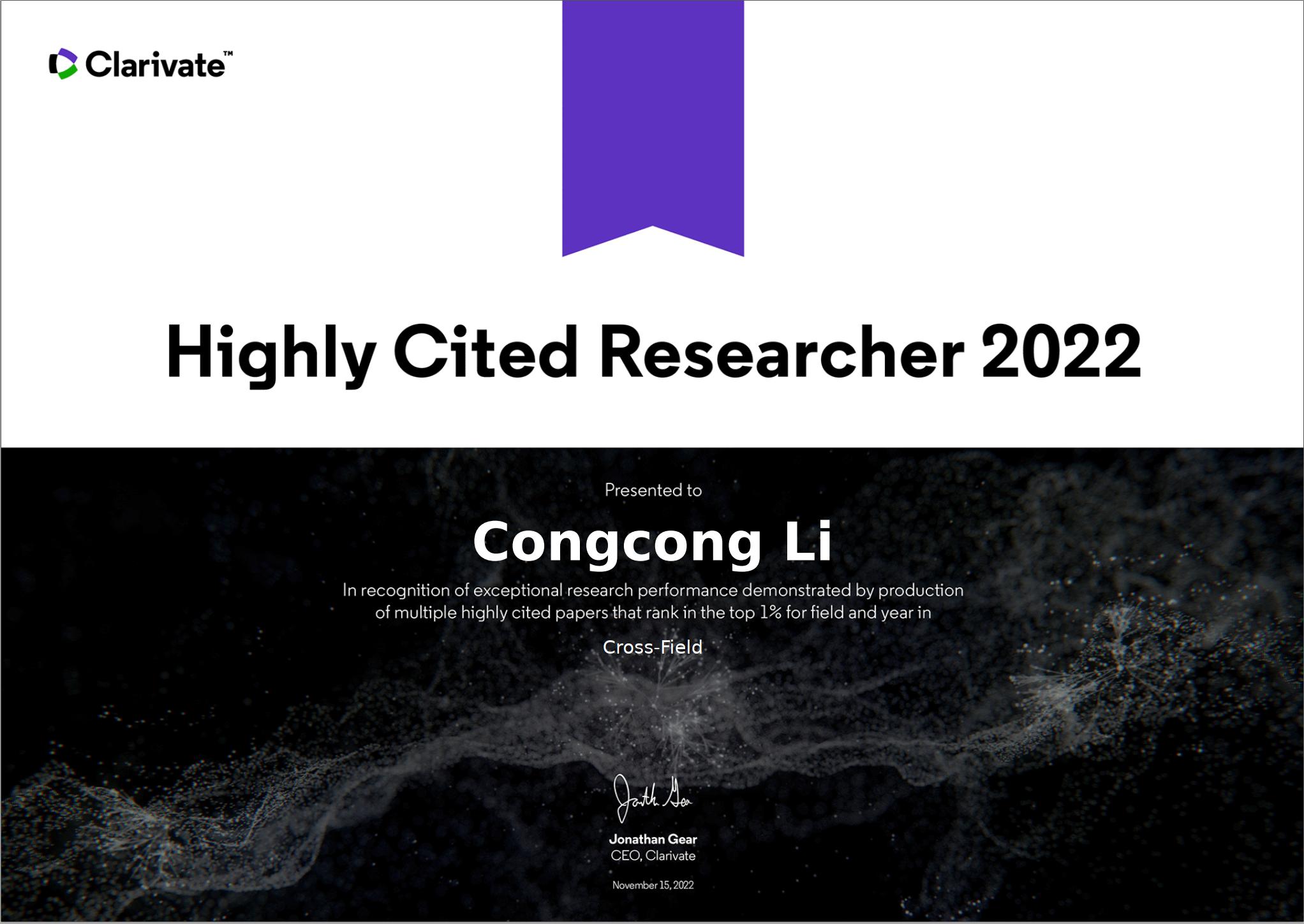 2022年11月15日,科睿唯安(Clarivate Analytics)发布了2022年度“高被引科学家” (Highly-Cited Researchers 2022)名单,来自全球69个国家和地区的6938人入选,其中中国内地的学者1169人。永利集团官网信息系统与运营管理系李聪聪老师入选“跨学科领域”(Cross-Field)高被引科学家名单。这是永利集团官网历史上第一位上榜的学者,实现了零的突破!