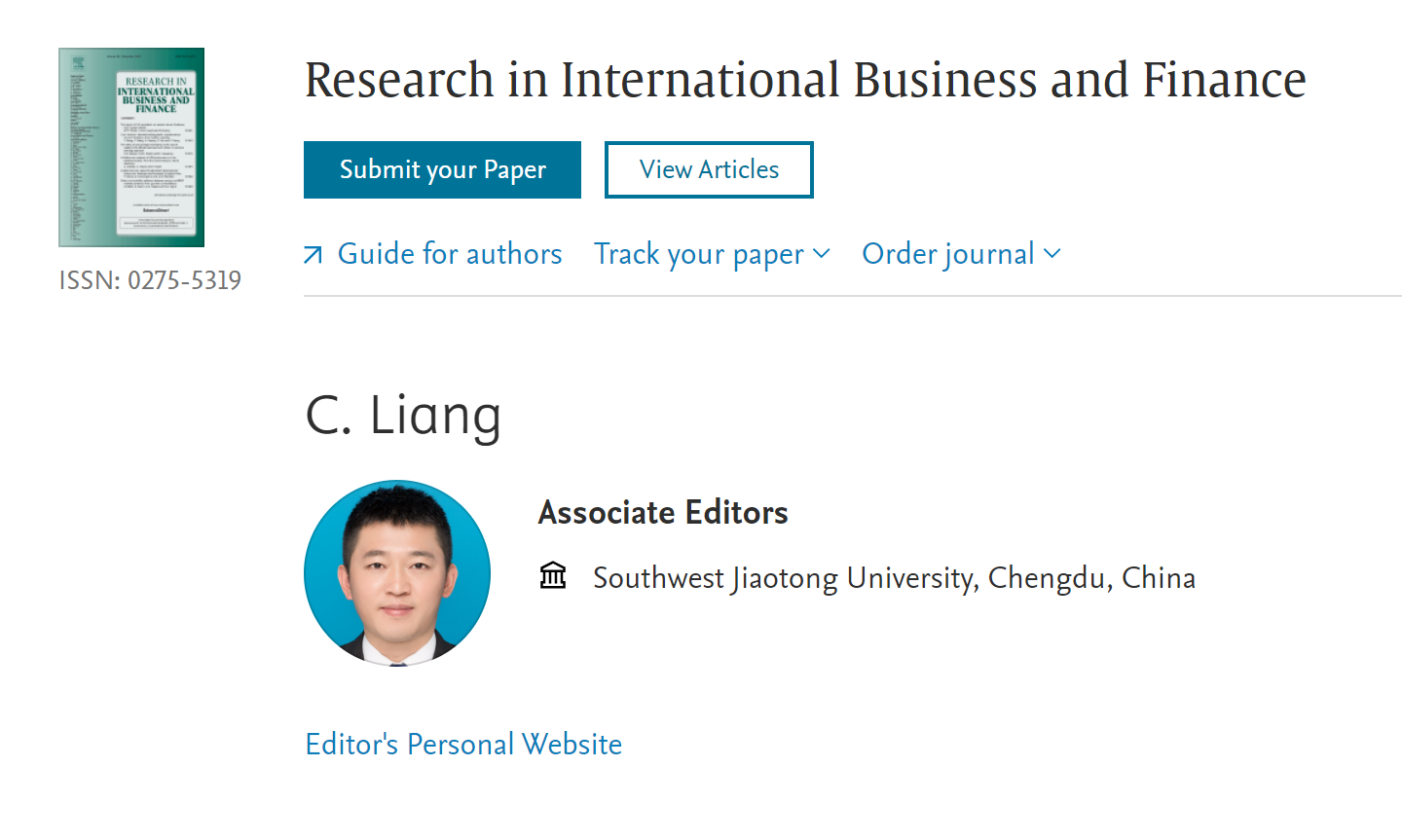 同时,永利集团官网梁超老师受美国阿克伦大学金融系教授John W. Goodell主编邀请,正式加入Research in International Business and Finance编委会,出任该刊副主编。Research in International Business and Finance是国际SSCI索引期刊,JCR1区,主要研究领域为金融市场、金融机构、行为金融等方面。2021年最新影响因子为6.143。