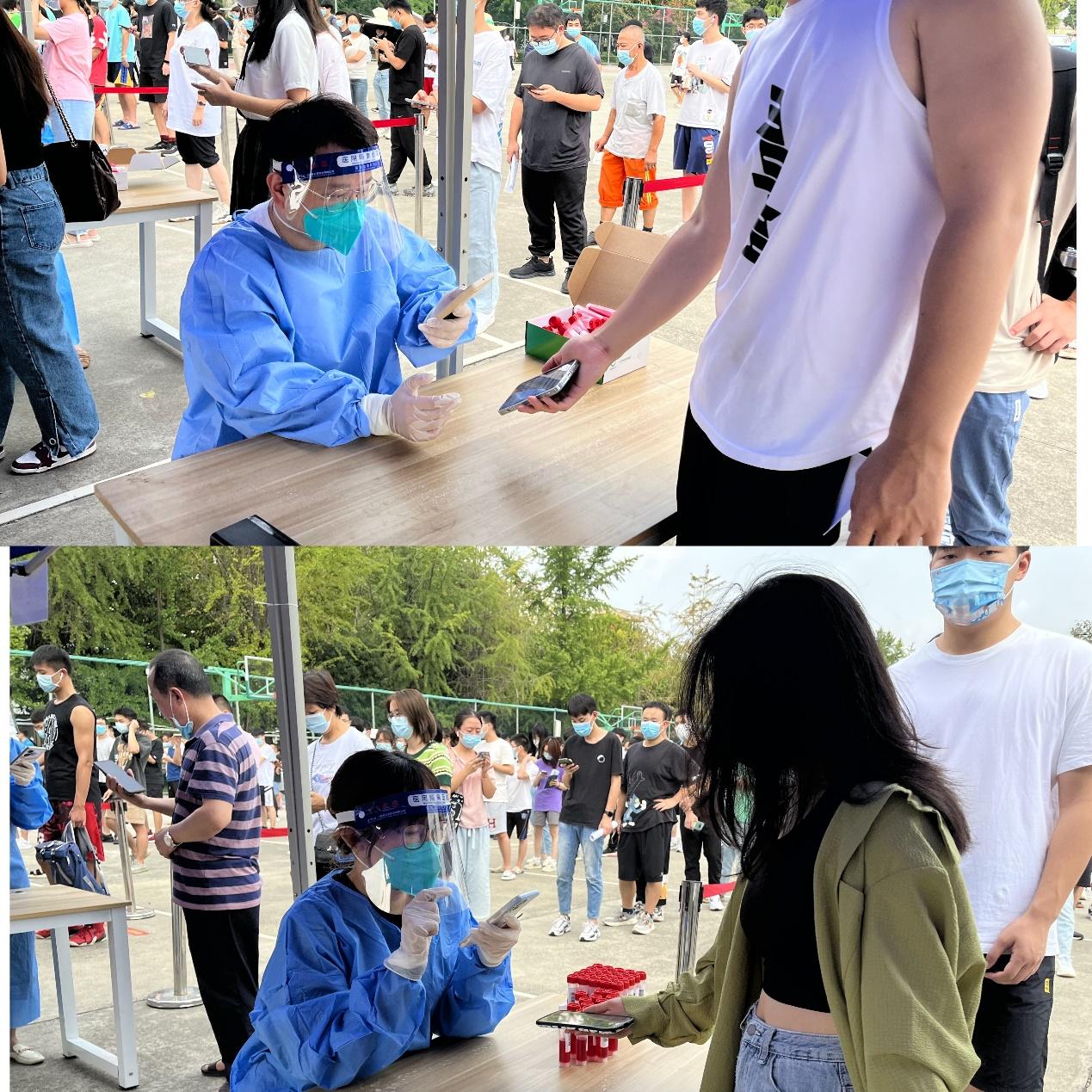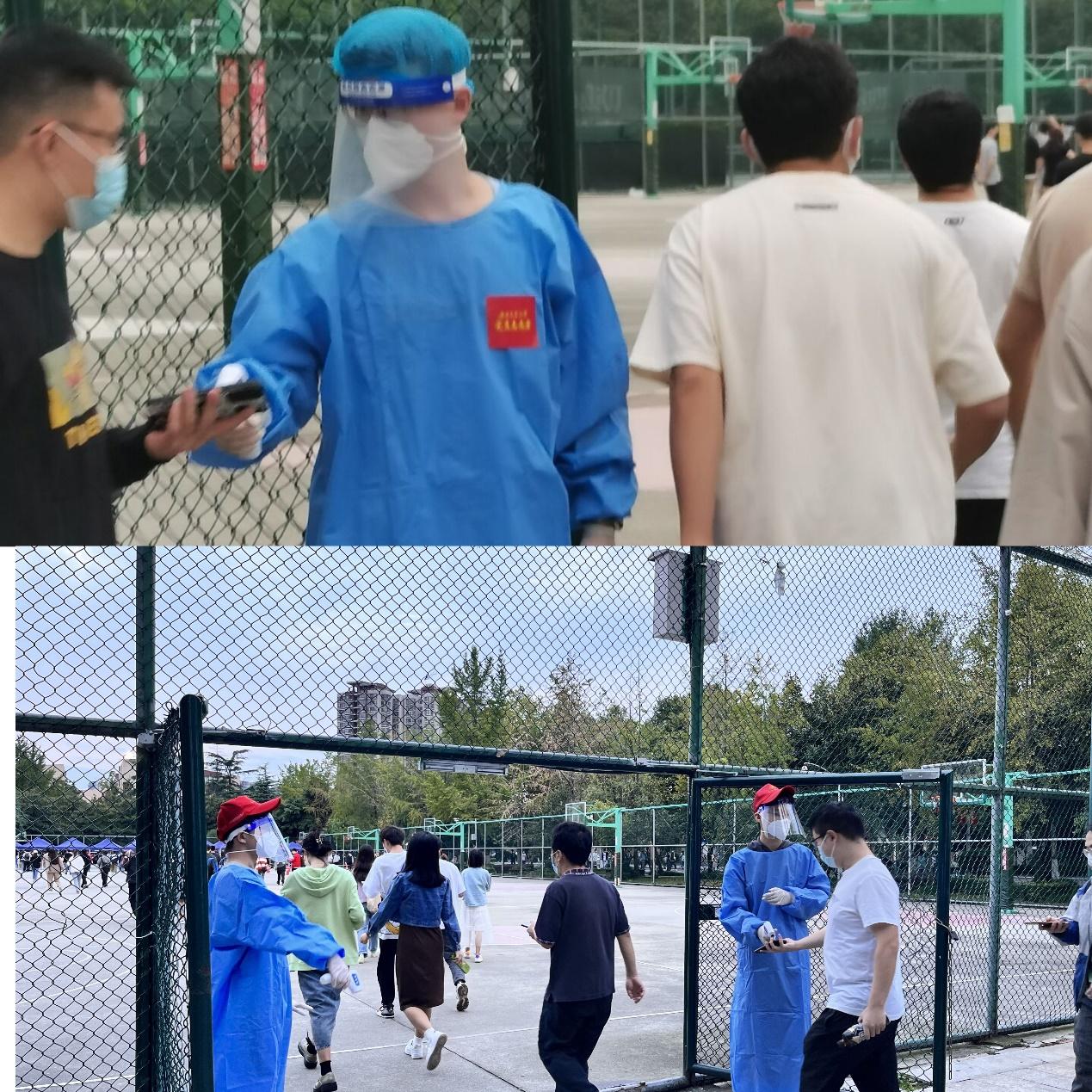 扫码、录入信息、协助医务工作者完成核酸检测,这是党支部党员陈建奇、尹玉萌同志在402永利集团官网入口九里校区的抗疫日常。穿上防护服、打开手机便开始了一天的工作,冗长的核酸队伍,无法停歇的重复扫码,汗水浸湿了衣服,但是,一句“感谢”带来的心满意足和盼望疫情早日消散、重现烟火交大的信念让他们认认真真、毫无怨言。