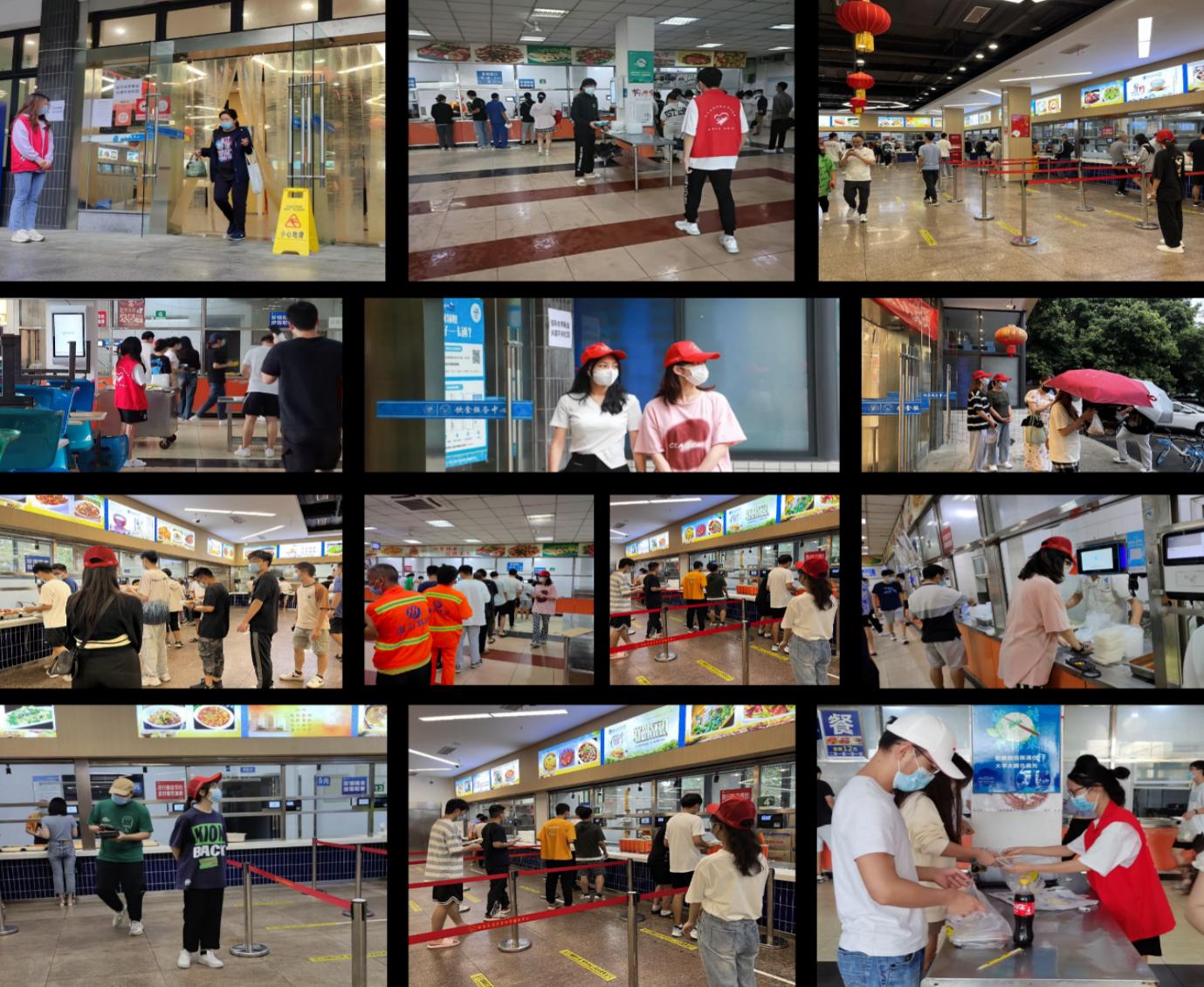 提醒就餐同学带好口罩、引导同学们有序进餐、维持核酸秩序 |