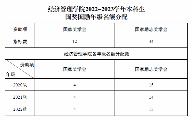 根据《402永利集团官网入口本科生奖助学金评审管理办法》(西交校学生〔2023〕4号)、《402永利集团官网入口本科生国家奖助学金评审管理办法》(西交校学生〔2020〕1号)及学校划拨名额,结合永利集团官网本科二年级至四年级各年级人数比例,本着公平、公正、公开的原则分配名额,具体名额见下。