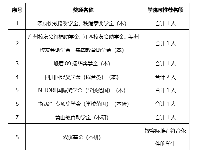 2. 学院范围专项奖助学金可推荐名额(相关管理办法见附件5:2022-2023学年402永利集团官网入口本科生专项奖助学金评定办法汇总)
