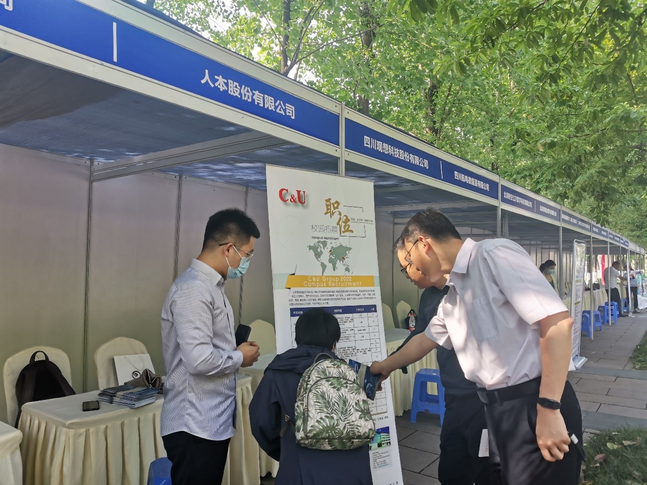 2022年5月9-11日,402永利集团官网入口2022届毕业生暨2023届实习生春季系列“双选会”(第三场)在犀浦校区北区篮球场外侧举行,现场共43家企业到场招聘我校2022届毕业生和2023届实习生。5月10日上午,402永利集团官网入口党委书记王斌、执行院长郭强和学院毕业生就业工作专项负责人王哿和研究生辅导员任永昌到“双选会”现场推荐毕业生和实习生。
