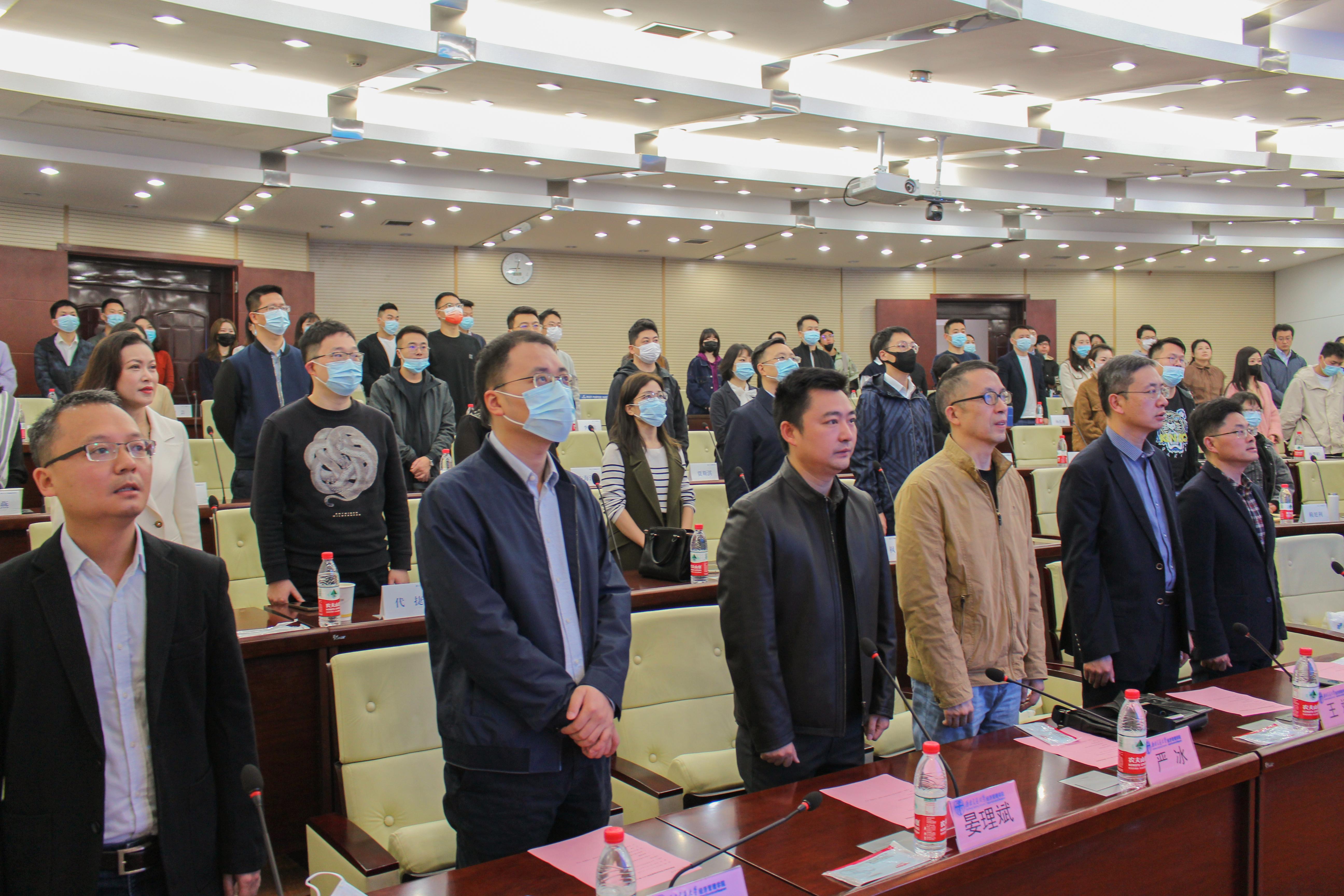 仪式伊始,全体起立,奏唱国歌。