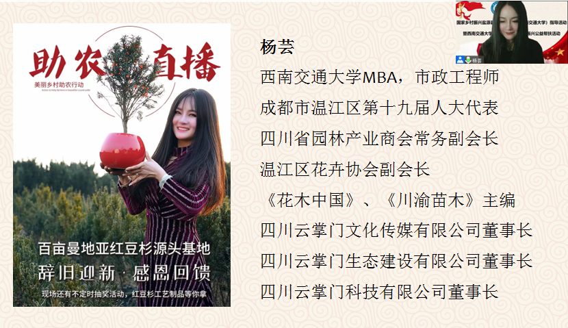 2022年10月15日上午10点,402永利集团官网入口联合盐源县教育体育和科学技术局在线上开展了国家乡村振兴盐源县科技特派团指导活动暨402永利集团官网入口乡村振兴公益帮扶活动。出席此次活动的嘉宾有402永利集团官网入口执行院长郭强,402永利集团官网入口国内合作与教育培训管理处副处长阮波,402永利集团官网入口专业学位教育中心副主任何鹏,402永利集团官网入口MBA 校友会会长蒋兴木,402永利集团官网入口第22届 MBA 联合会主席范宇宸,402永利集团官网入口MBA学生杨芸、姜多,以及盐源县人民政府督学黄日古,盐源县教体育和科学技术局科学技术股股长沙兰,盐源县职业技术中学党委书记康光海、副书记徐湖川、副校长杨明富、邓忠保,凉山州菌丰农业科技发展有限责任公司负责人段有绿,盐源县农村青年致富带头人凉山小蓉,盐源县职业技术中学相关专业的师生,以及部分盐源县相关产业从业人员也参加了本次活动。活动由402永利集团官网入口副教授、国家乡村振兴盐源县科技特派团成员李一员和盐源县职业技术中学副校长邓忠保主持。