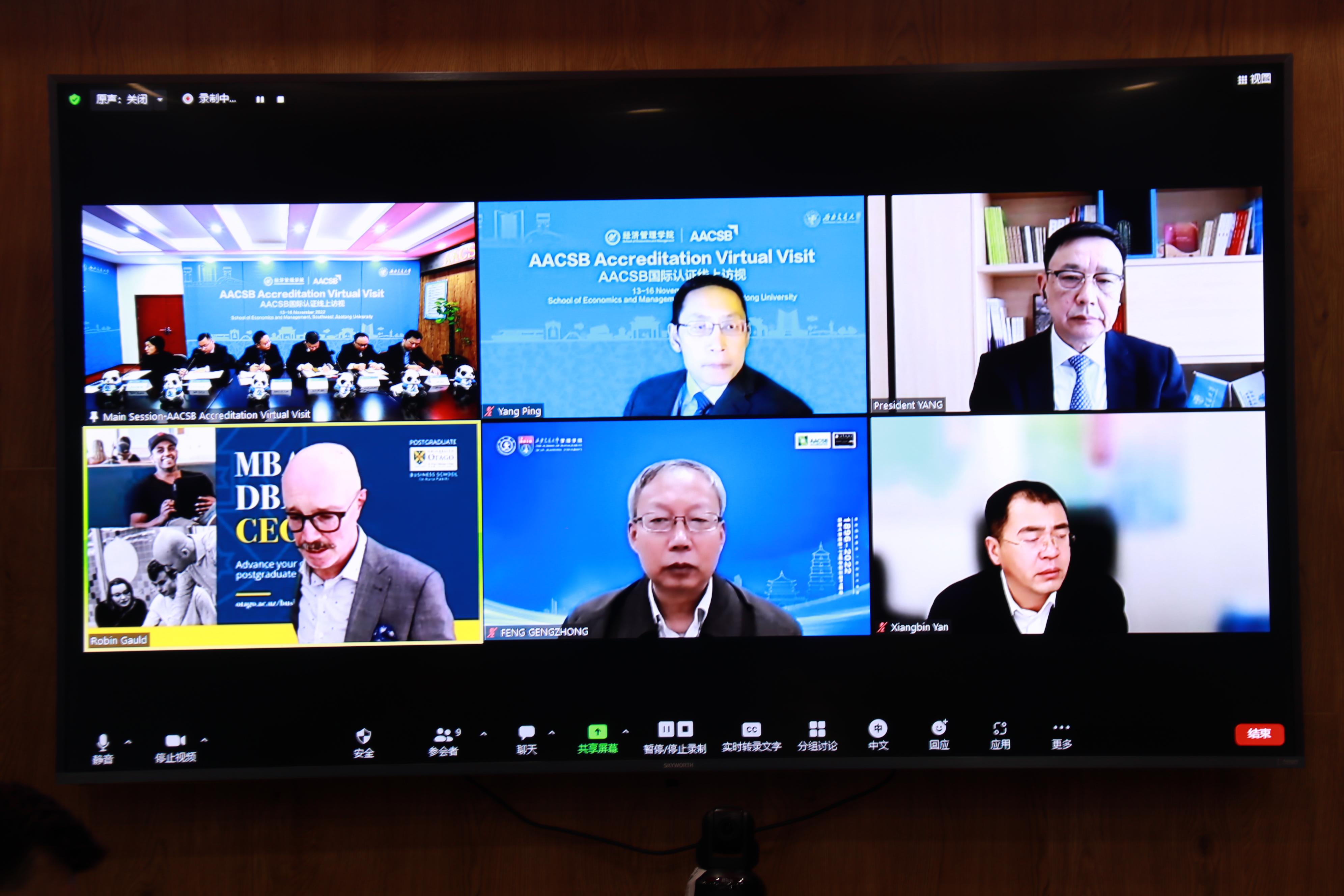 2022年11月13日至16日,402永利集团官网入口AACSB(国际精英商学院协会)国际认证线上访视顺利举行。亚太管理学院联合会主席、新西兰奥塔哥大学荣誉副校长、商学院院长Robin Gauld担任评审专家组主席,北京科技大学副校长闫相斌、西安交通大学管理学院院长冯耕中担任评审专家组委员。402永利集团官网入口校长杨丹、副校长刘长军、国际合作与交流处(港澳台办公室)处长马磊、以及402永利集团官网入口领导班子、师生员工等与评审专家组进行了会谈。