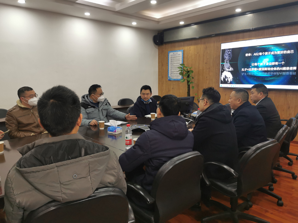 上海乂学教育科技有限公司CEO周伟就该公司在人工智能领域硬件的研发以及取得的科研成果进行详细的介绍,副总经理谢泽就人才培养、科研创新、大学生就业等领域与永利集团官网开展合作提出了需求。创业学院院长张华就设立大学生创业创新基金,推动高校毕业生高质量创业就业,以创新引领创业、创业带动就业做了一个介绍。