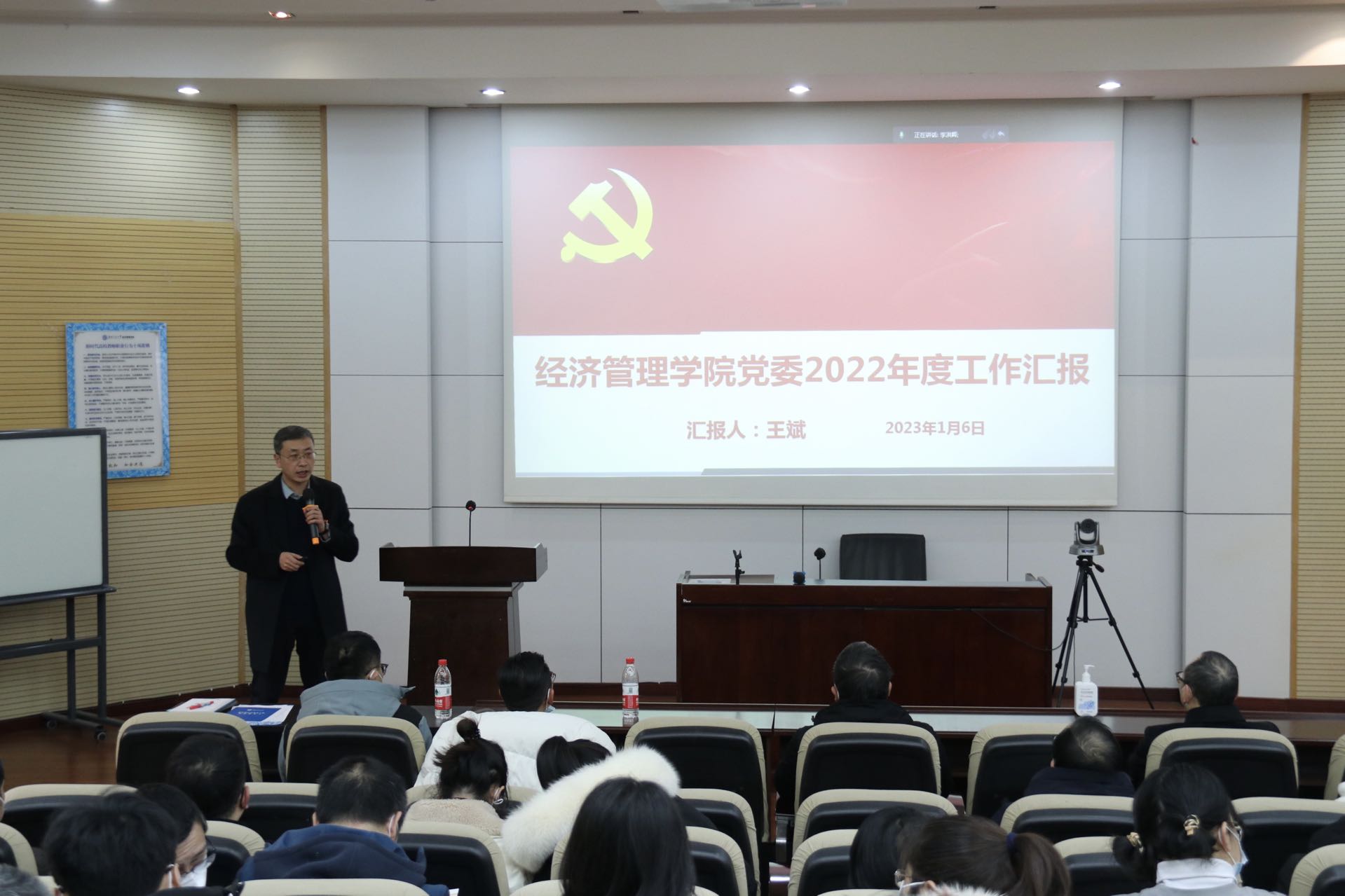 在党建满意度测评环节,王斌代表学院党委进行了述职。他从持续推进机制制度建设,着力推进“规范引领”工程;强化师生思想政治教育,着力推进“思政铸魂”工程;不断增强组织建设与保障,着力推进“活力建设”工程;坚持树典型作表率,着力推进“榜样示范”工程;强化教育制度监督,着力推进“从严治党”工程等五个方面,对学院2022年度的党建工作进行了汇报,并谈到学院党委在思想武装、领导班子建设、党建工作创新、党建与中心工作融合度这四个方面存在的问题及其原因,在此基础上提出了下一步的工作打算:一是狠抓师生的思想政治教育和理论武装;二是狠抓领导班子和干部队伍建设;三是狠抓基层党组织建设和党员的教育管理;四是狠抓党建工作与中心工作的深度融合;五是狠抓全面从严治党。
