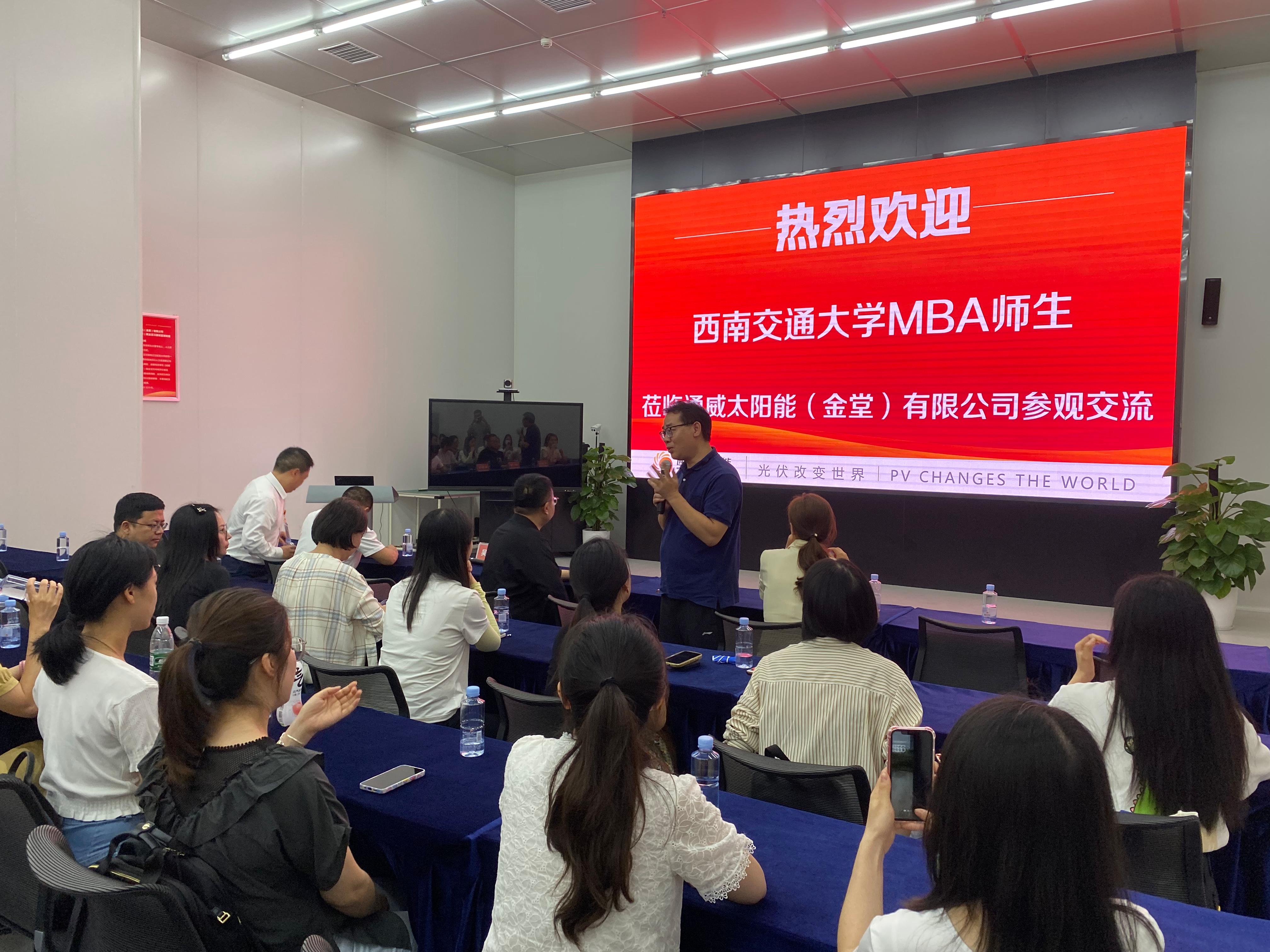 2023年5月20日,402永利集团官网入口执行院长郭强、2022级MBA班主任向洪信、MBA教学副主管马广平,带队2022级周末四班学员前往通威太阳能(金堂)有限公司进行参观访学交流活动。
