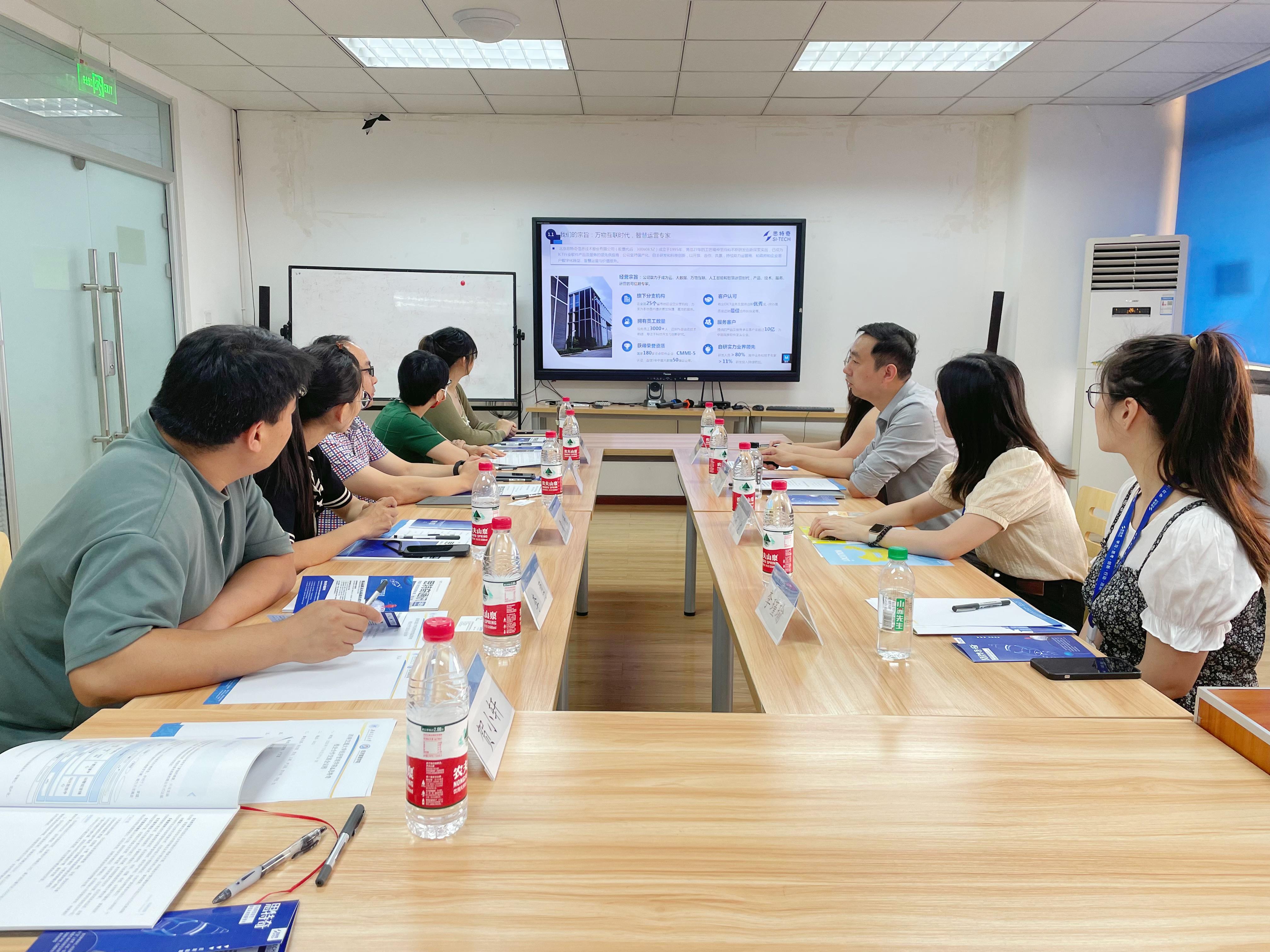 为扎实推进402永利集团官网入口“访企拓岗促就业”专项活动,有效搭建校企交流对接平台,促进校企资源、信息双赢共享,2023年7月6日上午9:30,402永利集团官网入口学生工作组与北京思特奇信息技术股份有限公司(以下简称思特奇)在九里校区信息楼0411会议室举行“访企拓岗”校企合作交流会。思特奇行业总监伍鑫、西南区校企合作负责人史晓楠、产品经理杨建(2021届交大校友)、西南区HRBP卢芷萱,402永利集团官网入口党委副书记杨宏毅、团委书记贾佳、学工组副组长王哿、辅导员尹玉萌和贺小轩出席了本次交流会。会议由杨宏毅主持。