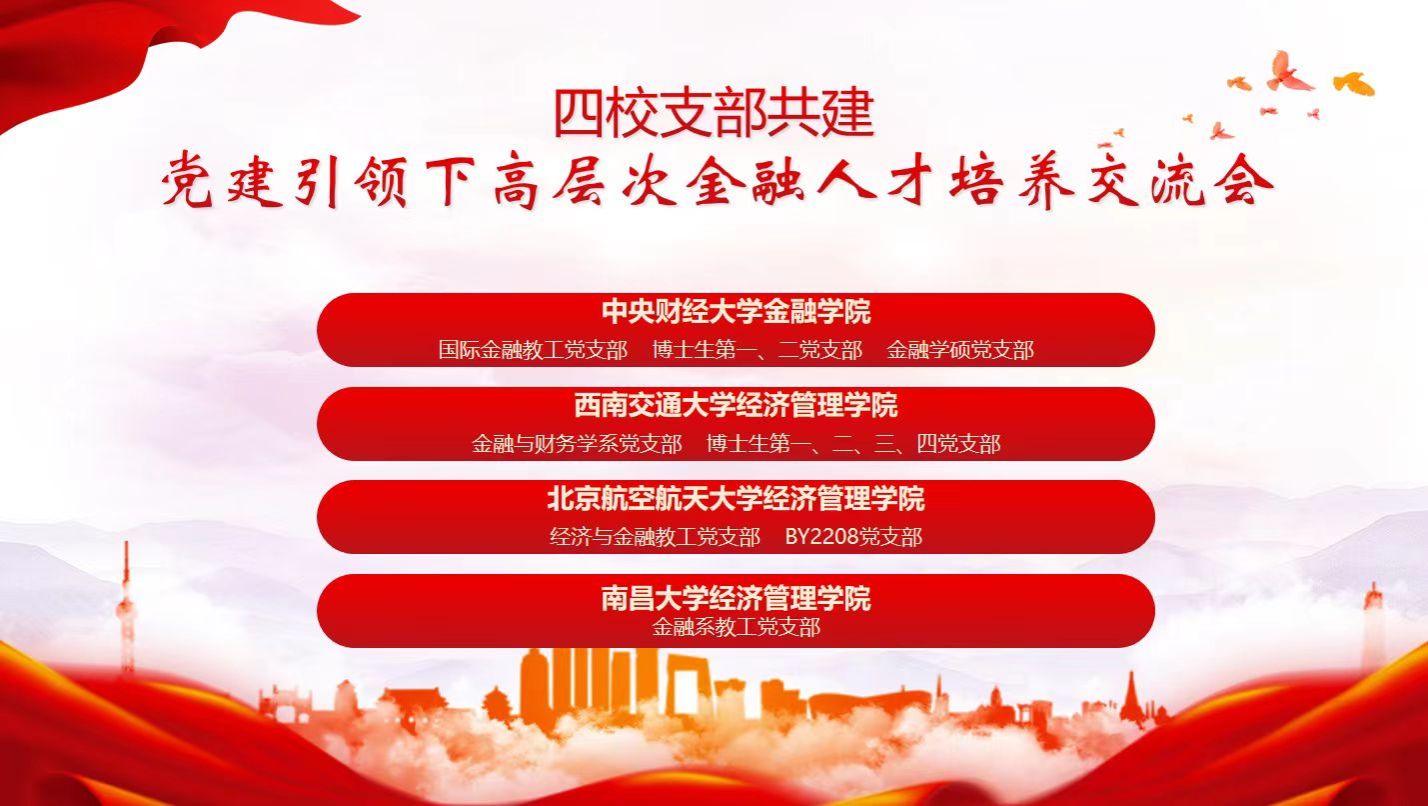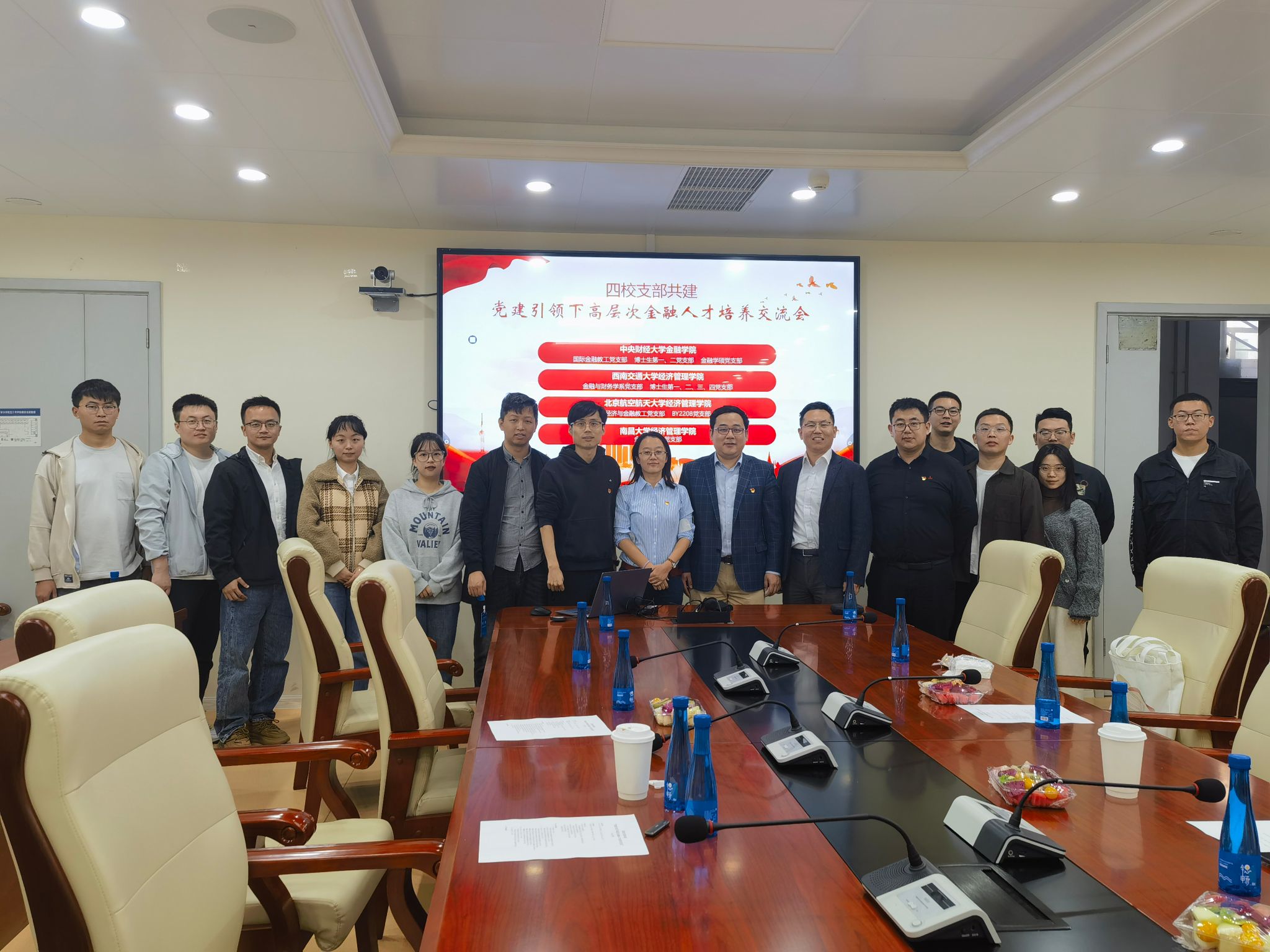 10月28日下午3点,中央财经大学金融学院、402永利集团官网入口,北京航空航天大学402永利集团官网入口和南昌大学402永利集团官网入口四校齐聚北京,共同开展了党建引领下高层次金融人才培养交流会。402永利集团官网入口金融与财务学系党支部书记马锋,北京航空航天大学402永利集团官网入口经济与金融教工党支部书记张军欢,南昌大学402永利集团官网入口金融系教工党支部书记邢凯及各校学生党支部部分成员参加了此次会议。会议由中央财经大学金融学院国际金融教工党支部(全国党建工作样板支部)书记尹力博主持。