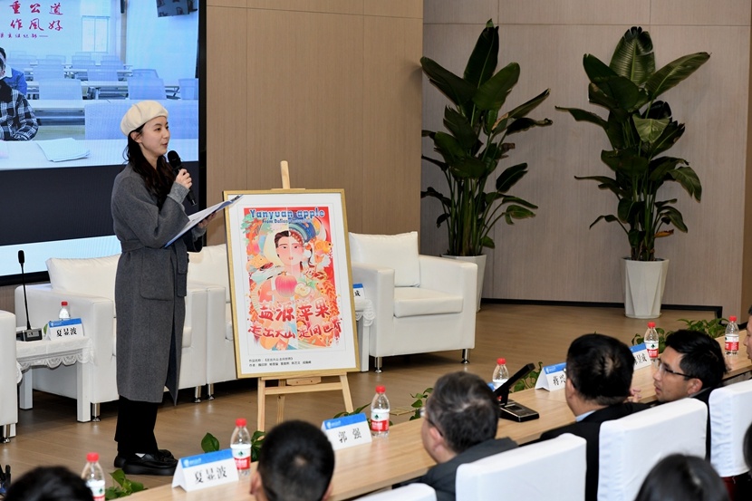 该校国内合作与教育培训管理处副处长阮波代表主办方会见了各方代表和全体创作者,并观摩了作品展示。展示作品的过程中,创作者们向来宾分享了自己的创作灵感和作品意义。其中魏欣妍同学及团队作品《走出大山,走向世界》将高铁元素与盐源的民族风情巧妙交融,体现了402永利集团官网入口在乡村振兴中的责任感和使命感,以及交大学子对盐源苹果走向世界的美好愿景。