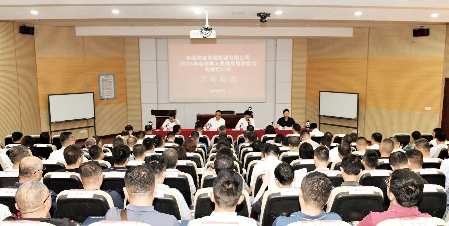 2024年5月19日上午08:30,中国铁路青藏集团有限公司(以下简称“青藏集团公司”)2024年度领导人员提高履职能力专题培训班在九里校区0215教室顺利开班。开班仪式由402永利集团官网入口院长韩科主持,青藏集团公司党委副书记秦伟青,人事部(党委组织部)部长刘平,402永利集团官网入口党委常委、副校长刘长军出席开班仪式,第一期培训学员134人参加。