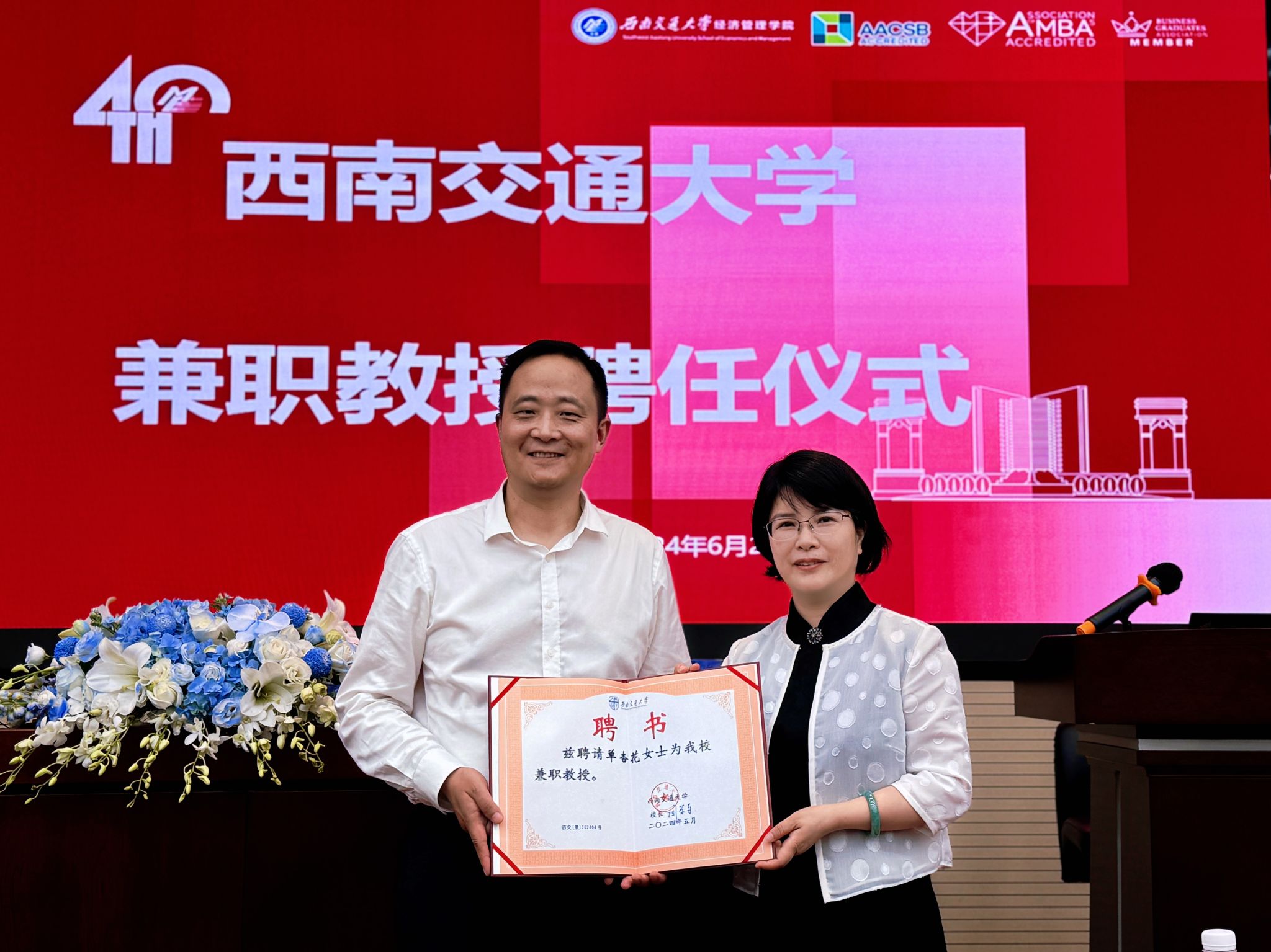 6月21日,402永利集团官网入口在九里校区举行单杏花兼职教授聘任仪式。402永利集团官网入口党委副书记高平平代表学校为单杏花教授颁发了402永利集团官网入口兼职教授聘书,并对单杏花教授加入我校表示热烈欢迎。