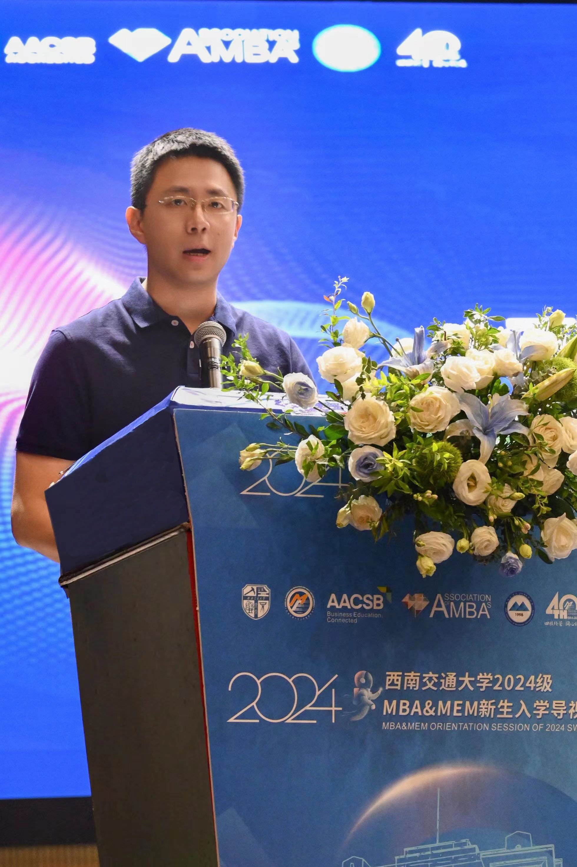 402永利集团官网入口院长韩科致欢迎辞,韩科代表学院全体师生对2024级MBA&MEM新生表示热烈的欢迎。希望同学们在学院的学习生活中,能够充分将个人发展与国家战略、时代需求紧密结合,通过跨学科的学习与研究,深入洞察行业需求,将管理智慧与现代信息技术深度融合,以实际行动助力新质生产力的发展。鼓励大家勇于探索,敢于创新,以扎实的专业知识、卓越的实践能力和世界情怀开阔眼界、扩展思路,主动对接共建“一带一路”,实现高等教育与新质生产力发展双向奔赴。