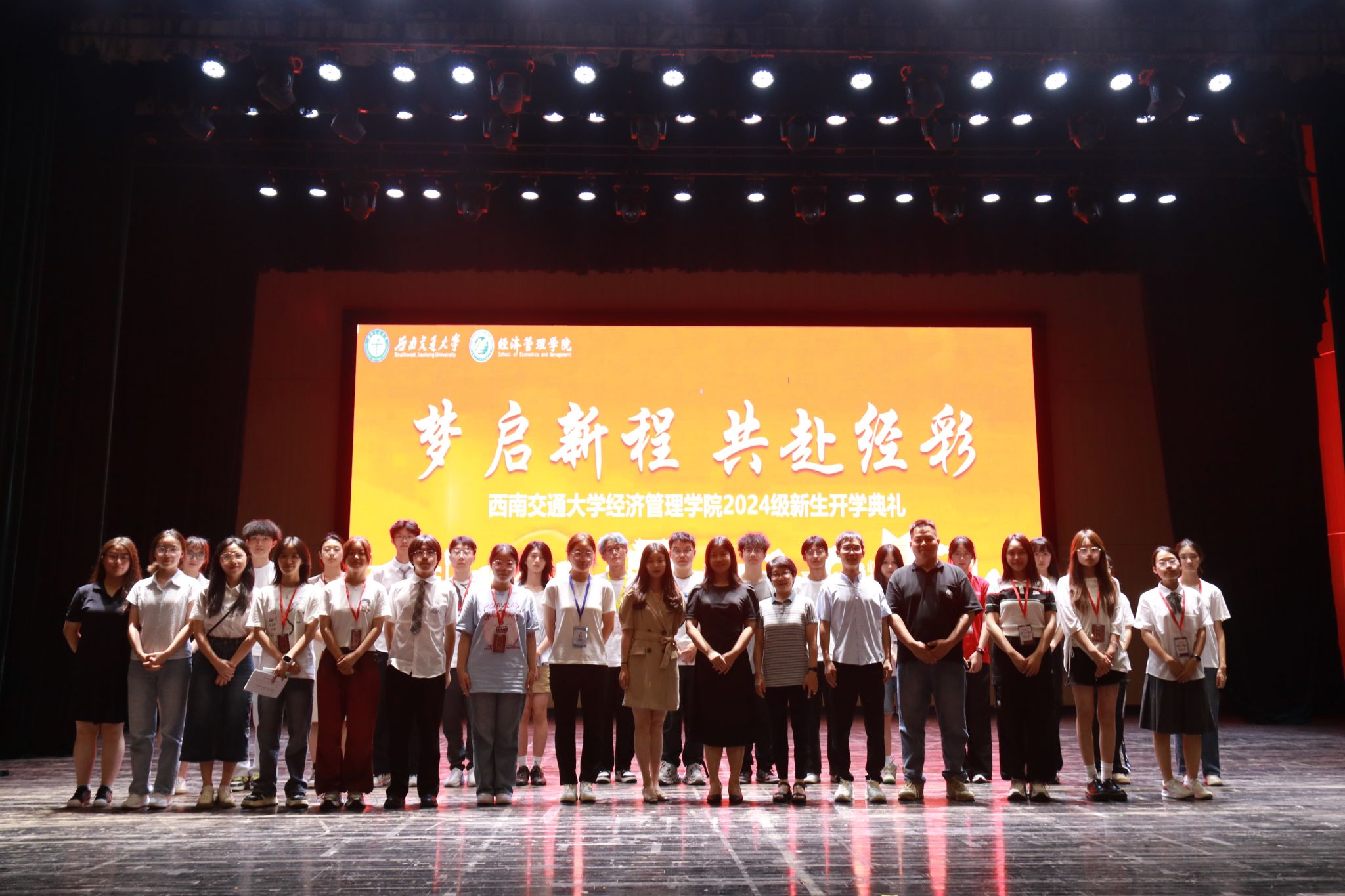 2024年8月31日晚,402永利集团官网入口2024级新生开学典礼在学生大会堂隆重举行。出席本次开学典礼的领导和嘉宾有:学院党委书记郭强,院长韩科,学院党委副书记、纪委书记晏理斌,副院长李良、聂佳佳、马锋,以及学院各系、中心的教职工代表,各班班主任,2024级辅导员。活动由学院党委副书记余小英主持。