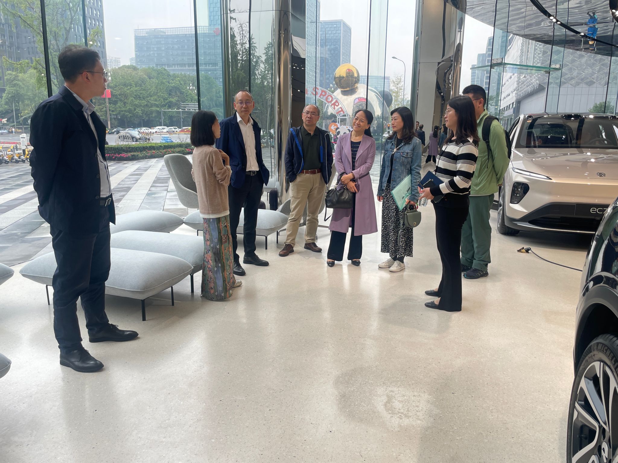 活动开始前,学院一行人乘坐蔚来汽车最新款车型车辆抵达现场,亲身体验了蔚来电车的卓越性能和先进技术。随后,在蔚来负责人许文娟的热情引导下,永利集团官网代表参观蔚来汽车展厅,深入了解了蔚来从创立至今的辉煌历程、发展理念以及未来规划。