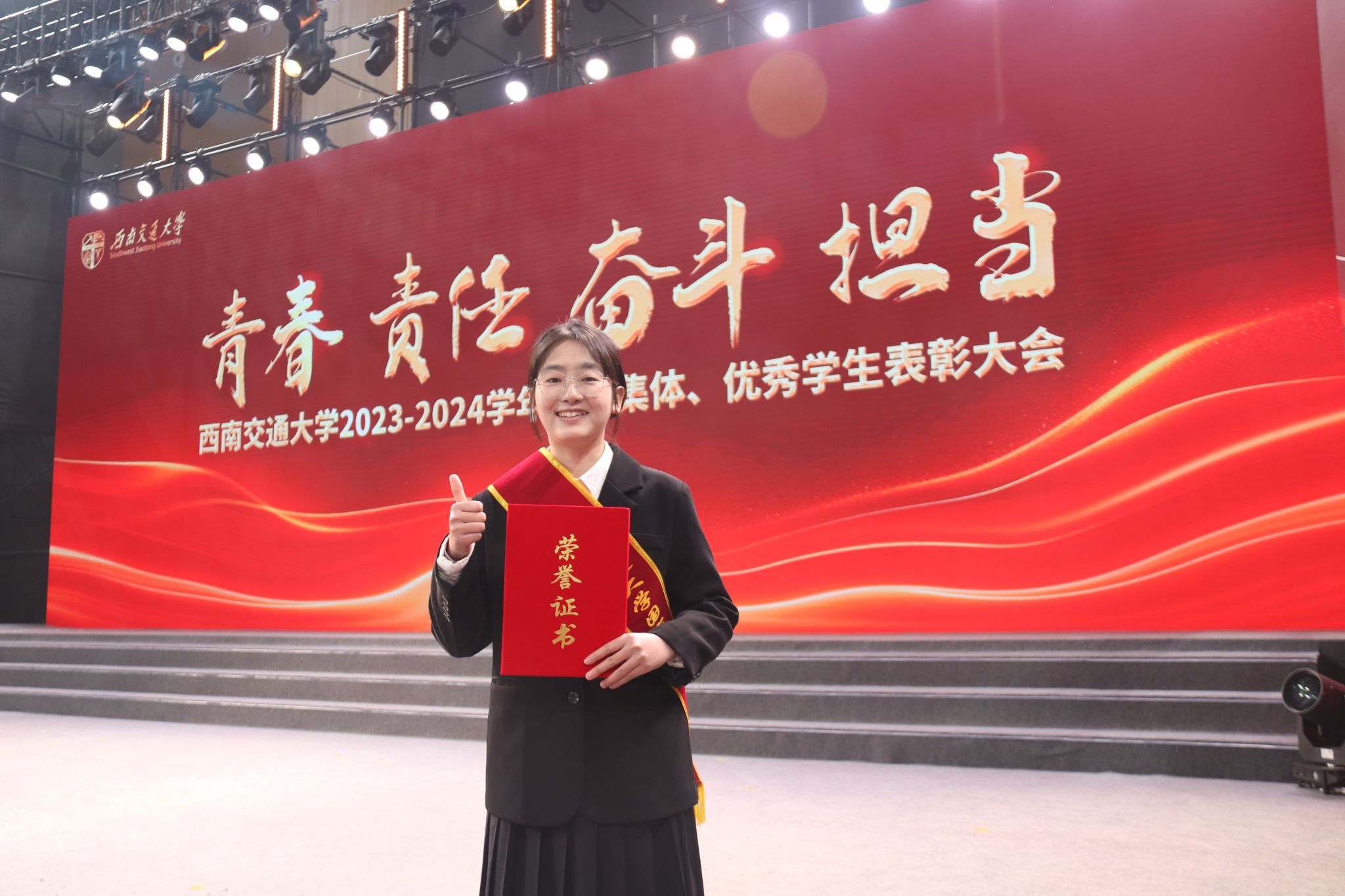 2021级本科生黄雅洁作为国家奖学金获奖代表接受表彰。刻苦是他们身上凸显出的力量,优秀是他们身上折射的符号,他们用热情,书写青春奋斗的诗篇,用榜样精神引领交大学子接续奋斗,展现了402永利集团官网入口学子昂扬向上的拼搏姿态。