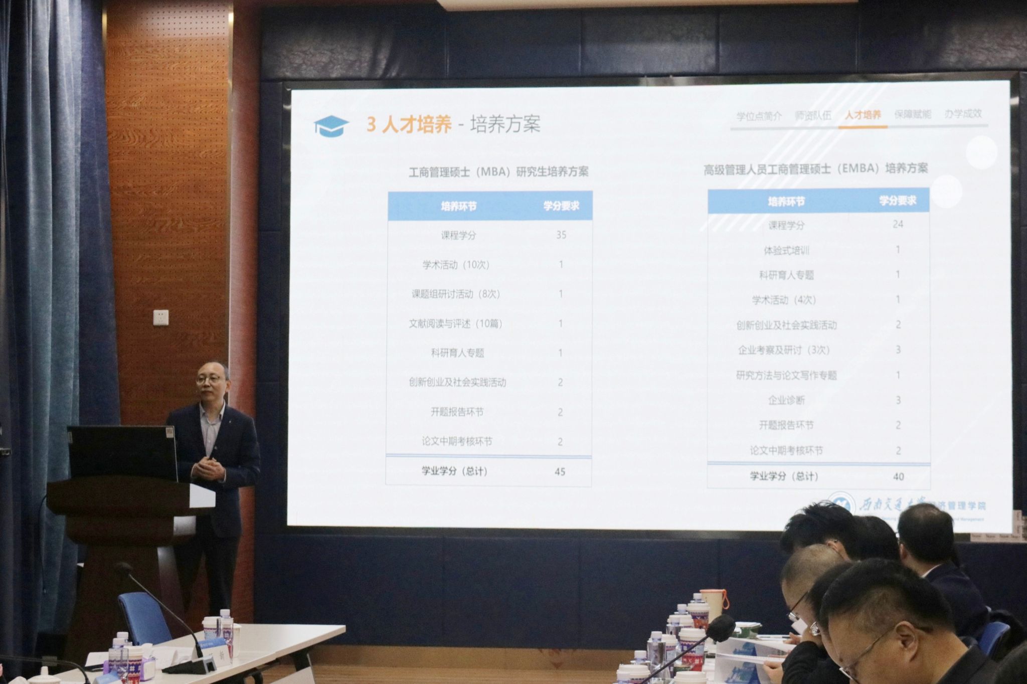 402永利集团官网入口副院长李良汇报了工商管理专业硕士学位点的师资力量、教学资源、科研水平、人才培养等多方面的情况。专家组通过听取汇报、审阅材料、现场提问等方式,对学位点的建设情况进行全面评估。