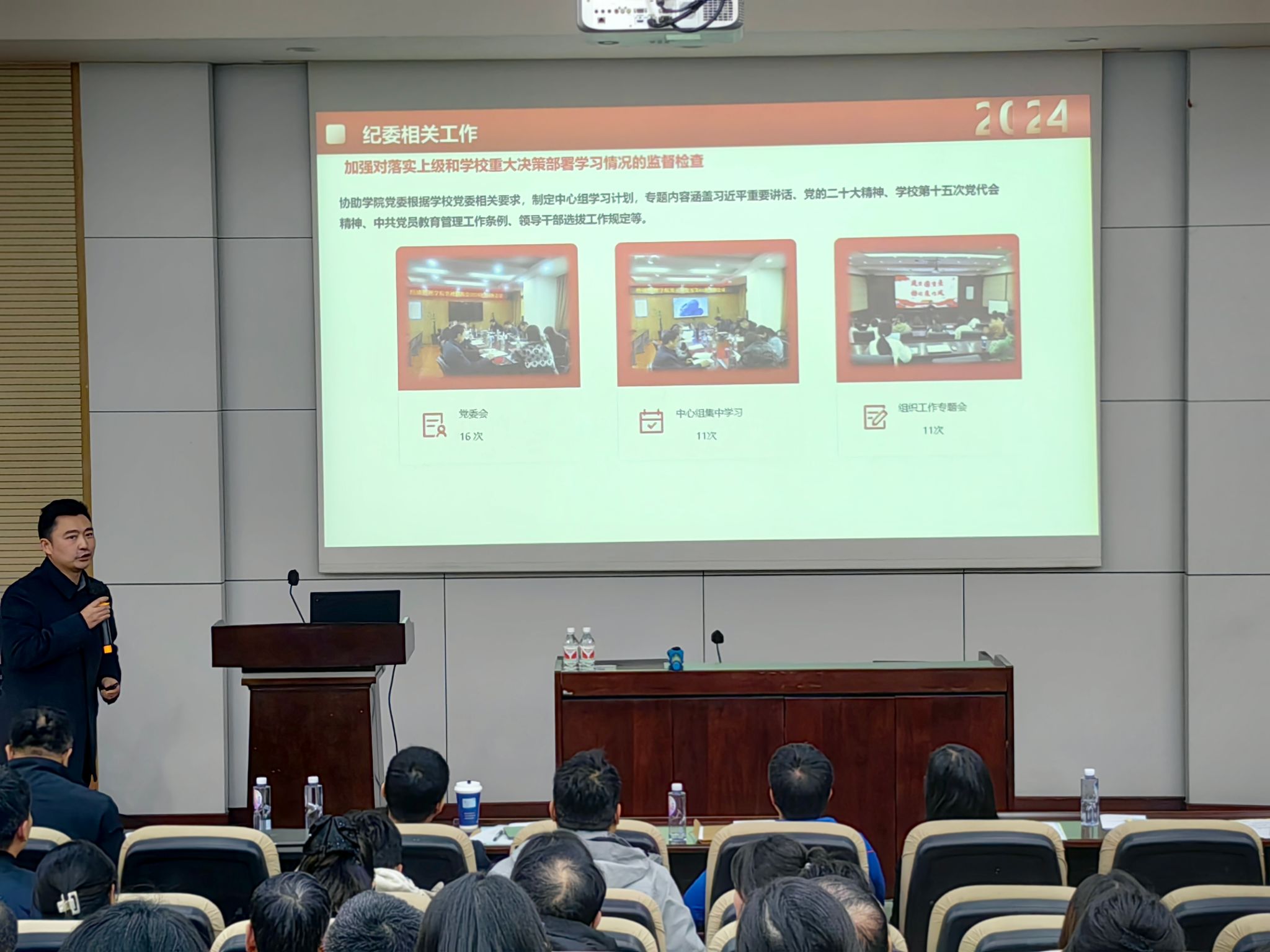 首先,学院科职干部对本年度的工作进行汇报,学院综合事务办公室主任、教师服务办公室主任、学生支持办公室主任、学工组副组长、专职组织员共6名科职干部对本年度的工作进行了总结和反思,并对新一年的工作计划和目标作出了展望。