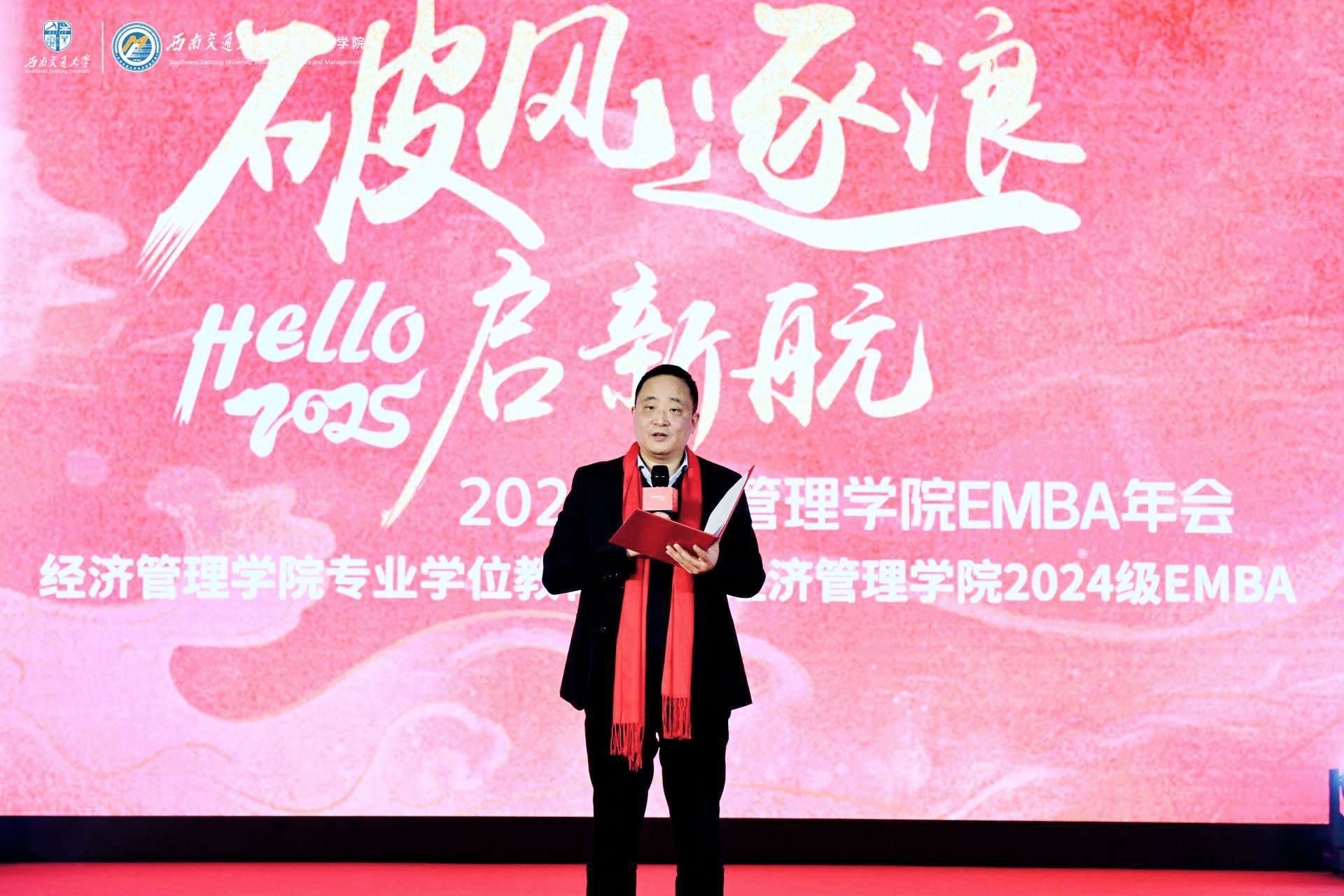 2025年1月4号,402永利集团官网入口402永利集团官网入口2025“破风·逐浪·启新航”EMBA年会在成都隆重举行,学校党委副书记高平平、学校职能部处相关领导以及学院党政领导班子、师生及校友代表齐聚一堂,共襄盛会。