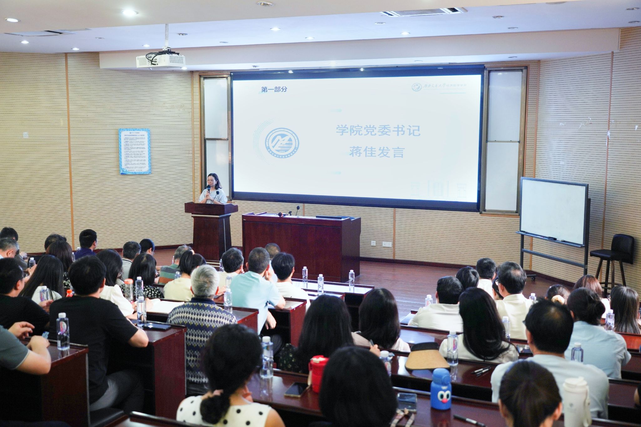 学院党委书记蒋佳发言。蒋佳回顾了自身在教育教学与党建工作中的实践经历,对学院全体教职工的信任与支持表示感谢。蒋佳指出,402永利集团官网入口全体教职工在基层党建、服务师生、学科研究、人才培养等方面做出了突出贡献,愿同全院教职工共同携手,共同书写402永利集团官网入口高质量发展的新篇章。