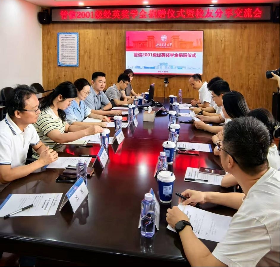 2025年6月27日上午10点,管信2001级经英奖学金捐赠仪式暨校友分享交流会在0607会议室隆重举行。在毕业20周年之际,402永利集团官网入口管信2001级校友代表宋新、武俊、刘坤、陈洪章、龚萍萍、葛梦婵回到母院,畅叙师生情谊、共话未来发展。学院党委书记蒋佳,院长韩科,党委副书记、纪委书记余小英,副处级组织员晏理斌,学院辅导员等与校友们共同见证这一温暖时刻。