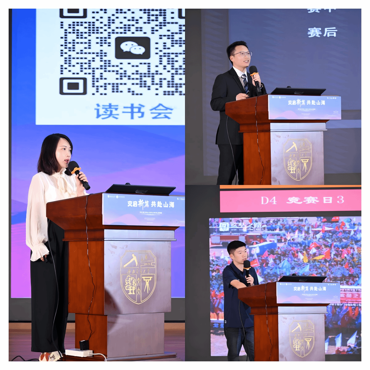 紧接着,MBA联合会副主席王汝超介绍了7个社团的创立理念及活动开展情况,鼓励新生踊跃加入。她指出,参加社团能丰富课余生活,开拓视野,还能结交志同道合的朋友,助力个人成长与未来发展。MBA联合会副主席刘林介绍了沙漠挑战赛,EMBA学长周鹏介绍了戈壁挑战赛,他们回顾了交大学子在历届比赛中的征程与佳绩,分享了参赛感受,并呼吁2025级同学积极参与拼搏,展现交大人“自强不息”的精神。
