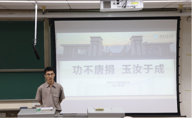 秋日正好,微风习习,402永利集团官网入口本科2019级于9月16日和24日在J4318教室举行“功不唐捐,玉汝于成”主题年级大会,年级大会由2019级辅导员苏扬主持。402永利集团官网入口党委副书记杨宏毅、学院研究生教育中心主任马锋、本科教务员尹一、2019级辅导员向起锐作为嘉宾受邀参加了大会,2019级全体同学参加了此次年级大会。本次大会的主题为“功不唐捐,玉汝于成”,意在勉励2019级的同学在挫折中打磨自我,坚持奋斗。