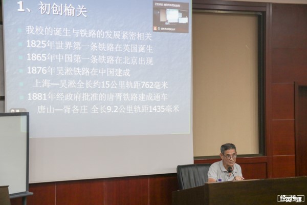 首先,杨宏毅对主讲人梁锦堂老师进行了介绍。梁老师曾任402永利集团官网入口党总支副书记、校招分处副处长、出版社书记兼副社长等职,多年来从事中国铁路教育史和402永利集团官网入口校史研究,参与编写了《竢实扬华自强不息》《当祖国召唤的时候》《中国铁路教育史》《中国铁路教育志稿》等书。其中,《中国铁路教育史》一书荣获2009年四川省优秀图书一等奖。他在退休后长期为大学生、中学生讲述交大校史,曾被评为四川省关心下一代委员会先进个人和全国关心下一代委员会先进个人,在2017年荣获四川省老教授协会颁发的晚霞奖。杨宏毅表示每次听完梁老师的校史讲座他都收获良多,也希望同学们可以通过此次讲座多多了解交大校史。