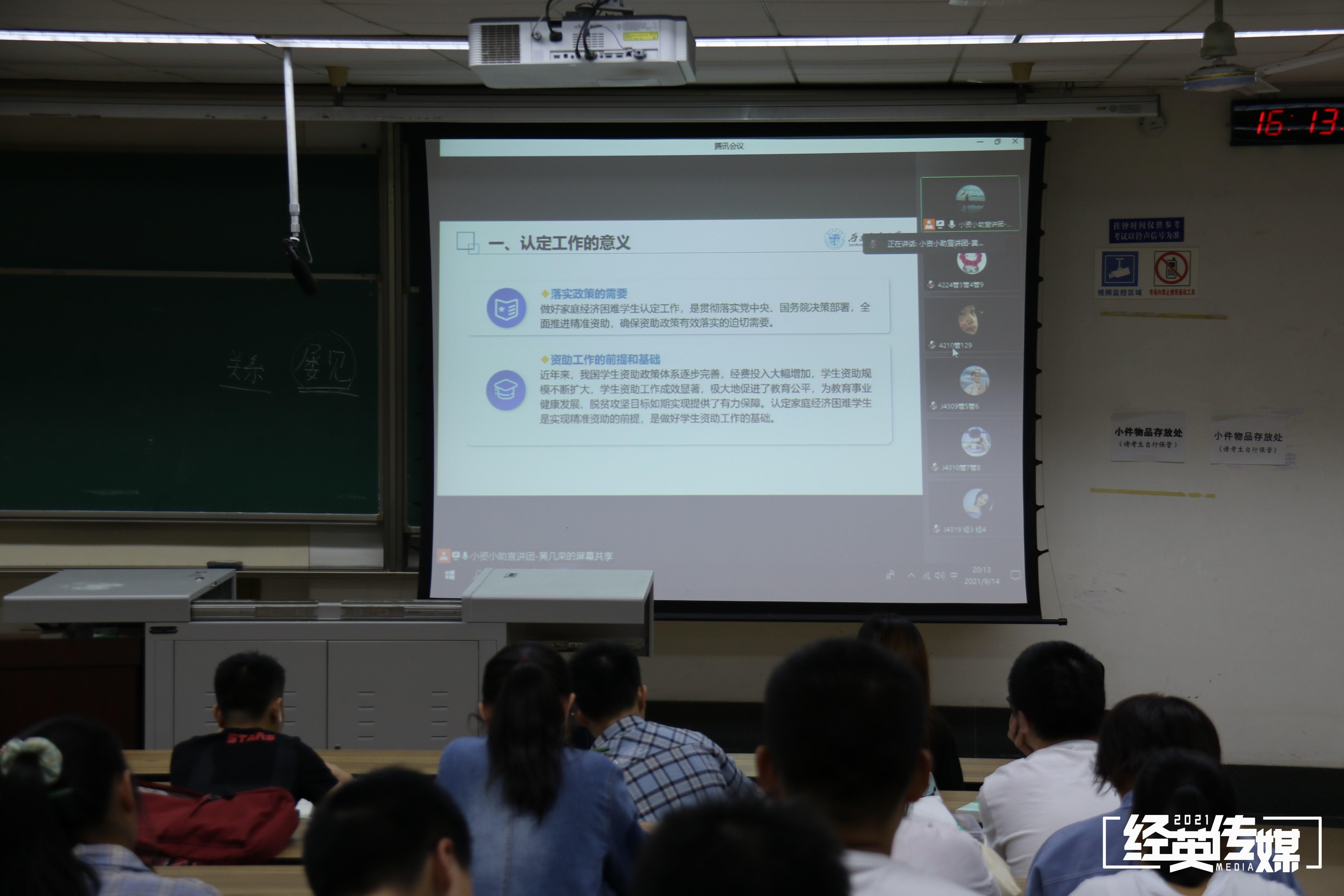 9月15日晚,402永利集团官网入口为新生开展家庭经济困难学生认定工作介绍,小资小助宣讲团黄几荣担任主讲人,以线上形式为新生们讲解。